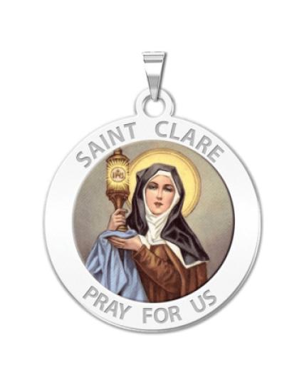 All Religious Medals are Customizable. We can change the spelling, your language, names etc, ex: change "Pray for Us" to "Pray For Me". Just let us know in "special instructions"Color Laser is a patent pending process, color is guaranteed to last foreverColor Medals can be worn in the pool, shower, etc. without affecting the image. We guarantee it.Saint Clare of Assisi, born Chiara Offreduccio (July 16, 1194 August 11, 1253) was an Italian saint and one of the first followers of Saint Francis of Assisi. She founded the Order of Poor Ladies, a monastic religious order for women in the Franciscan tradition. Following her death, the order she founded was renamed in her honor as the Order of Saint Clare, commonly referred to today as the Poor Clares.