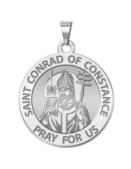 All Religious Medals are Customizable. We can change the spelling, your language, names etc, ex: change "Pray for Us" to "Pray For Me". Just let us know in "special instructions"Conrad was a member of the powerful Welf family, son of Count Heinrich of Altdorf. After an education at the cathedral school in Constance, he became provost of Constance Cathedral and in 934 was made Bishop of Constance. It is counted as one of his achievements that he avoided becoming enmeshed in the politics of the day and reserved his energies for his episcopal duties. He was nevertheless close to Emperor Otto I, whom he accompanied to Italy in 962. Conrad made three pilgrimages to Jerusalem as well as a number to Rome. He founded a number of churches on the episcopal estates and the hospital at Kreuzlingen, named after a portion of the True Cross which Conrad brought back from Jerusalem and presented to it.