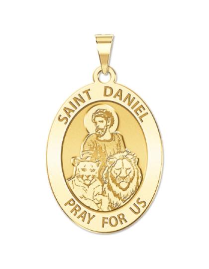 All Religious Medals are Customizable. We can change the spelling, your language, names etc, ex: change "Pray for Us" to "Pray For Me". Just let us know in "special instructions"Daniel (Hebrew: , Modern Daniyyel Tiberian Dniyyl ; Persian: , Dniyal or Danial, also Dani, ; Arabic: , Danyal) is the central protagonist of the Book of Daniel. The name "Daniel" means "judgement of God", Dan = judgement, "i = a suffix denoting a genitive relationship and "El" = God. This article describes the character Daniel, from the Book of Daniel,which is a book of the bible, as a historical figure. The historicity of Daniel, which is a subject of dispute, is discussed at Book of Daniel. This section describes him within the setting of the history that the Bible describes. At a young age, Daniel was carried off to Babylon where he was trained in the service of the court under the authority of Ashpenaz. Daniel became famous for interpreting dreams and rose to become one of the most important figures in the court and lived well into the reign of the Persian conquerors. He retained his high position there and had influence in the decision to restore the Jews to their homeland. Daniel would years later himself be cast into a den of lions for continuing to practice his faith in HaShem. But he also was miraculously delivered; after which Cyrus issued a decree enjoining reverence for "the God of Daniel" (Daniel 6:26). He "prospered in the reign of Darius, and in the reign of Cyrus the Persian," whom he probably greatly influenced in the matter of the decree which put an end to the Jewish Captivity (BC 536). Daniel's ministry as a prophet began late in life. Whereas his early exploits were a matter of common knowledge within his community, these same events, with his pious reputation, serve as the basis for his prophetic ministry. The recognitio