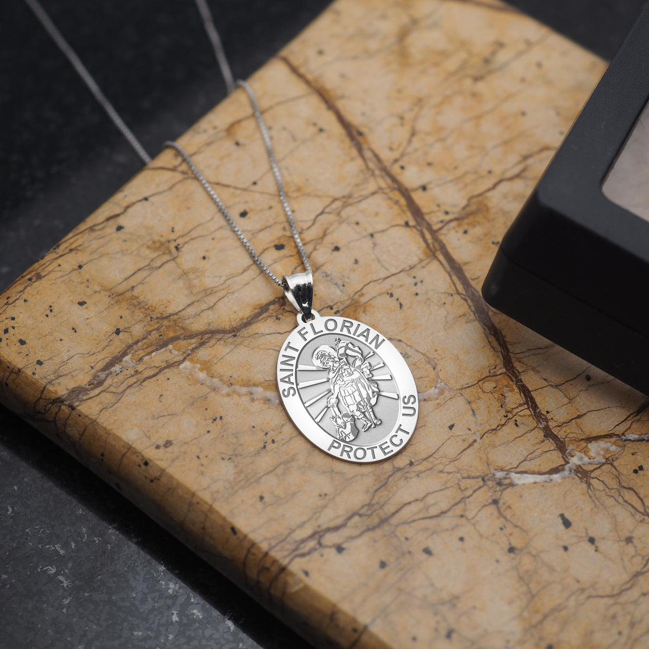 All Religious Medals are Customizable. We can change the spelling, your language, names etc, ex: change "Pray for Us" to "Pray For Me". Just let us know in "special instructions"This Solid 14K Gold Saint Florian Medal is the patron Saint of Firefighters. He held an high administrative post in the Roman Army. In the 4th century their was a fierce persecution of Christians. Saint Florian was tortured and killed.