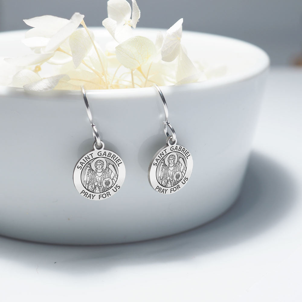 - In the Gospel of Luke, St. Gabriel reveals to the Jewish Pharisee and Priest Zechariah that John the Baptist will be born to Zechariah's wife Elizabeth and visits Elizabeth's cousin Mary to reveal that she will give birth to Jesus. Gabriel's visit to Mary is often called "The Annunciation", an event that is celebrated on March 25 in the Eastern Orthodox and Catholic churches. It is also commemorated as the "First Joyful Mystery" of the rosary. Price Per Pair Each Earring is 2/3 inch (size of a dime)