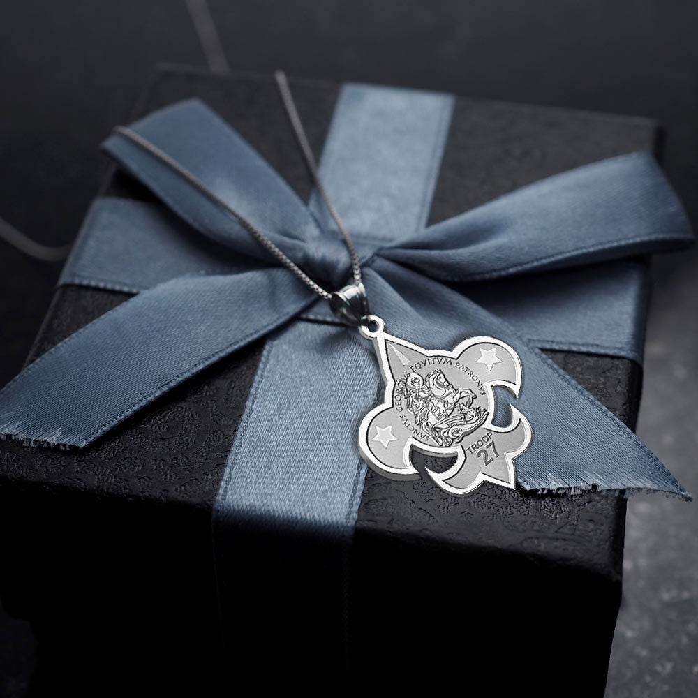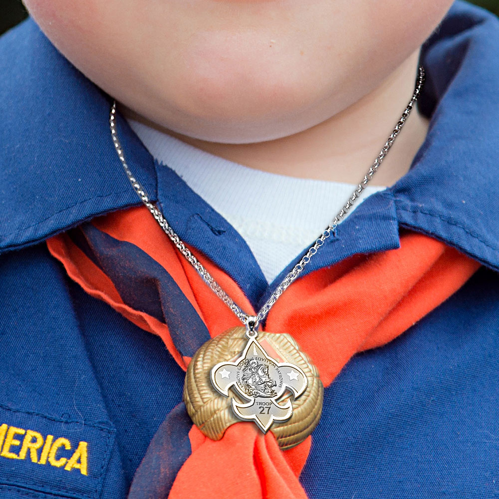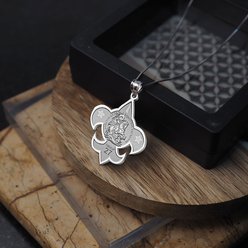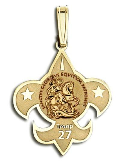 All Religious Medals are Customizable. We can change the spelling, your language, names etc, ex: change "TROOP" to "PACK". Just let us know in "special instructions"In Christian hagiography Saint George (ca. 275-281April 23, 303) was a soldier of the Roman Empire, from the then Greek-speaking Anatolia, now modern day Turkey, and is venerated as a Christian martyr. Saint George is one of the most venerated saints in the Eastern Orthodox Church and Oriental Orthodox Churches. He is immortalized in the tale of George and the Dragon and is one of the Fourteen Holy Helpers. St. George is the patron saint of Aragon, Canada, Catalonia, England, Ethiopia, Georgia, Greece, Montenegro, Palestine, Portugal, Russia, and Serbia, as well as the cities of Amersfoort, Beirut, Ferrara, Freiburg, Genoa, Ljubljana, and Moscow, as well as a wide range of professions, organizations and disease sufferers.