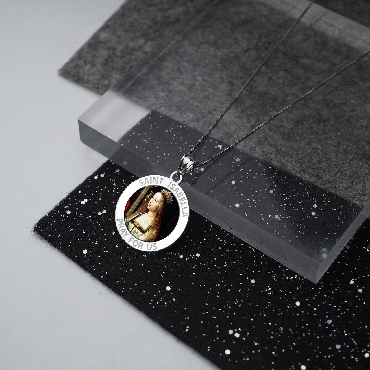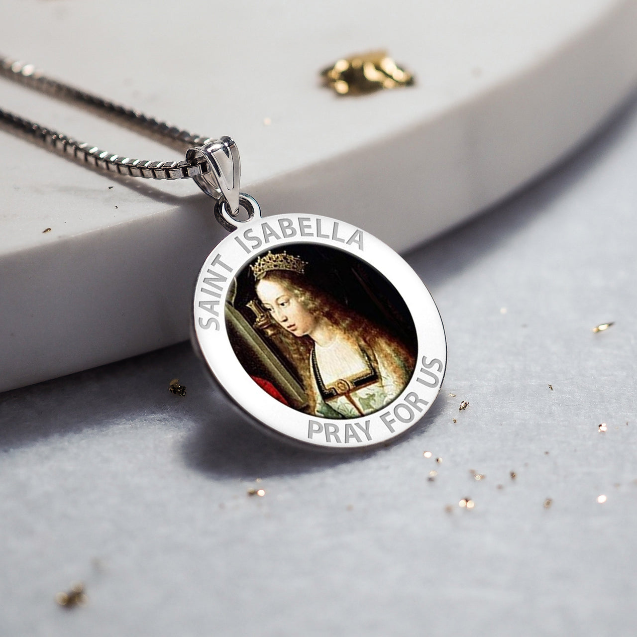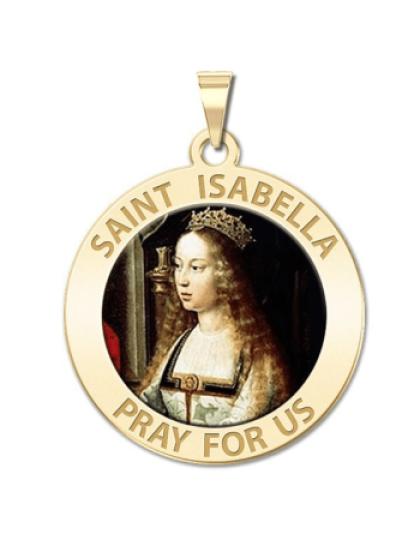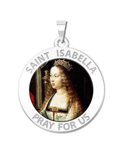 All Religious Medals are Customizable. We can change the spelling, your language, names etc, ex: change "Pray for Us" to "Pray For Me". Just let us know in "special instructions"Saint Isabella was born in the year 1291 in a town in Spain called Aragon. Her father was the king of Aragon and his name was Pedro. Saint Isabella of Portugal was brought to Mass every day by her family and had set hours for prayer time. She was educated well and received much religious counsel from priests and nuns. If somebody you known is getting ready to celebrate marriage, tell the bride to pray to Saint Isabella because she is the patron saint of brides. Saint Isabella of Portugal was married young, at the age of just twelve. Her husband was King Diniz, who was a ruler in Portugal at the time. This made Isabella the Queen of Portugal. Diniz was a great poet and worked hard at all he did, but had absolutely no morals in his life whatsoever. Diniz slept with many other women during their marriage and even beat Isabella at times. Diniz and his son Affonso, who was a prince, had a clash over Diniz and his many other children that he had with other women. This conflict between the two turned into a battle, and Isabella put an end to it. She made sure that no blood was shed over their petty argument. Diniz would pass away in 1325, and this left Isabella with all their possessions. She gave away nearly all their land to the less privileged. She joined the Franciscan tertiaries and lived the rest of her life at a monastery. The last thing that Isabella would do for others in her time was to break up another battle started by her son Affonso, the king at that point in time. Saint Isabella would pass away in the year 1336 on July 4th, due to a high fever. She was canonized a saint by Pope Urban VIII in 1625.