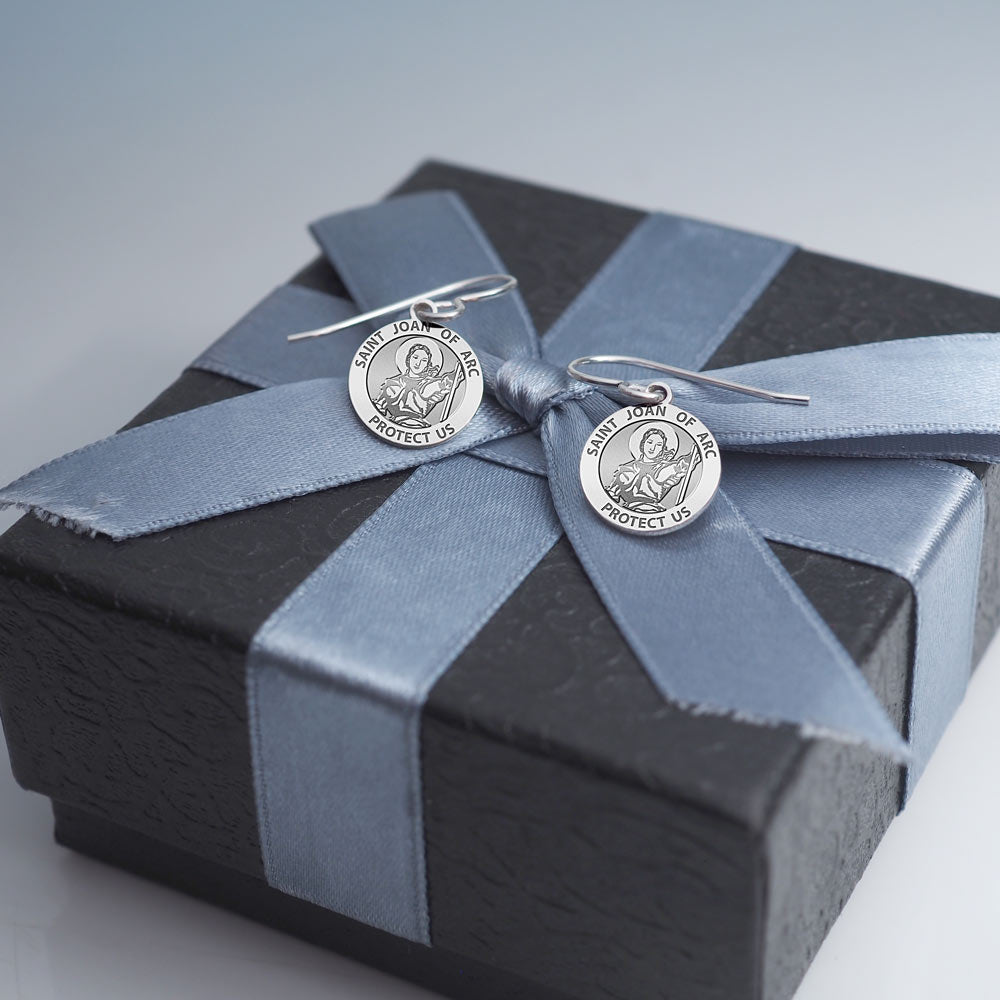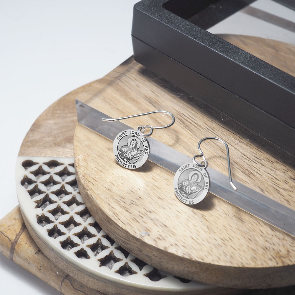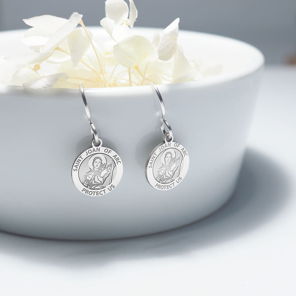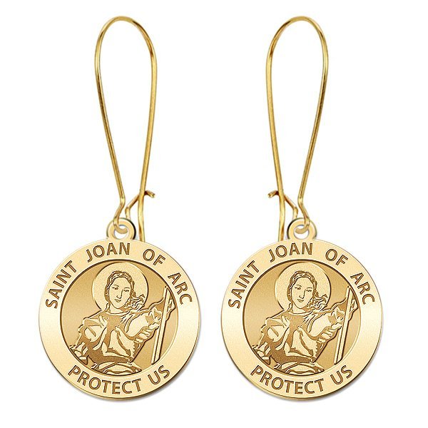 - Joan of Arc, or Jehanne d'Arc in French, (c. 1412 May 30, 1431) also known as "the Maid of Orleans", was a 15th century virgin saint and national heroine of France. A peasant girl born in Eastern France, Joan led the French army to several important victories during the Hundred Years' War, claiming divine guidance, and was indirectly responsible for the coronation of King Charles VII. She was captured by the English and tried by an ecclesiastical court led by Bishop Pierre Cauchon, an English partisan; the court convicted her of heresy and she was burned at the stake by the English when she was nineteen years old. Twenty-four years later, the Holy See reviewed the decision of the ecclesiastical court, found her innocent, and declared her a martyr. She was beatified in 1909 and later canonized in 1920. She is patron saint of captives; France; martyrs; opponents of Church authorities; people ridiculed for their piety; prisoners; rape victims; soldiers; Women Appointed for Voluntary Emergency Service; Women's Army Corpscity of San Antonio. Price Per Pair Each Earring is 2/3 inch (size of a dime)