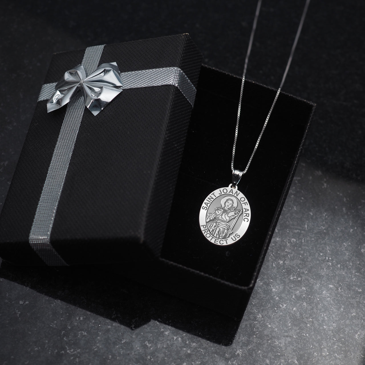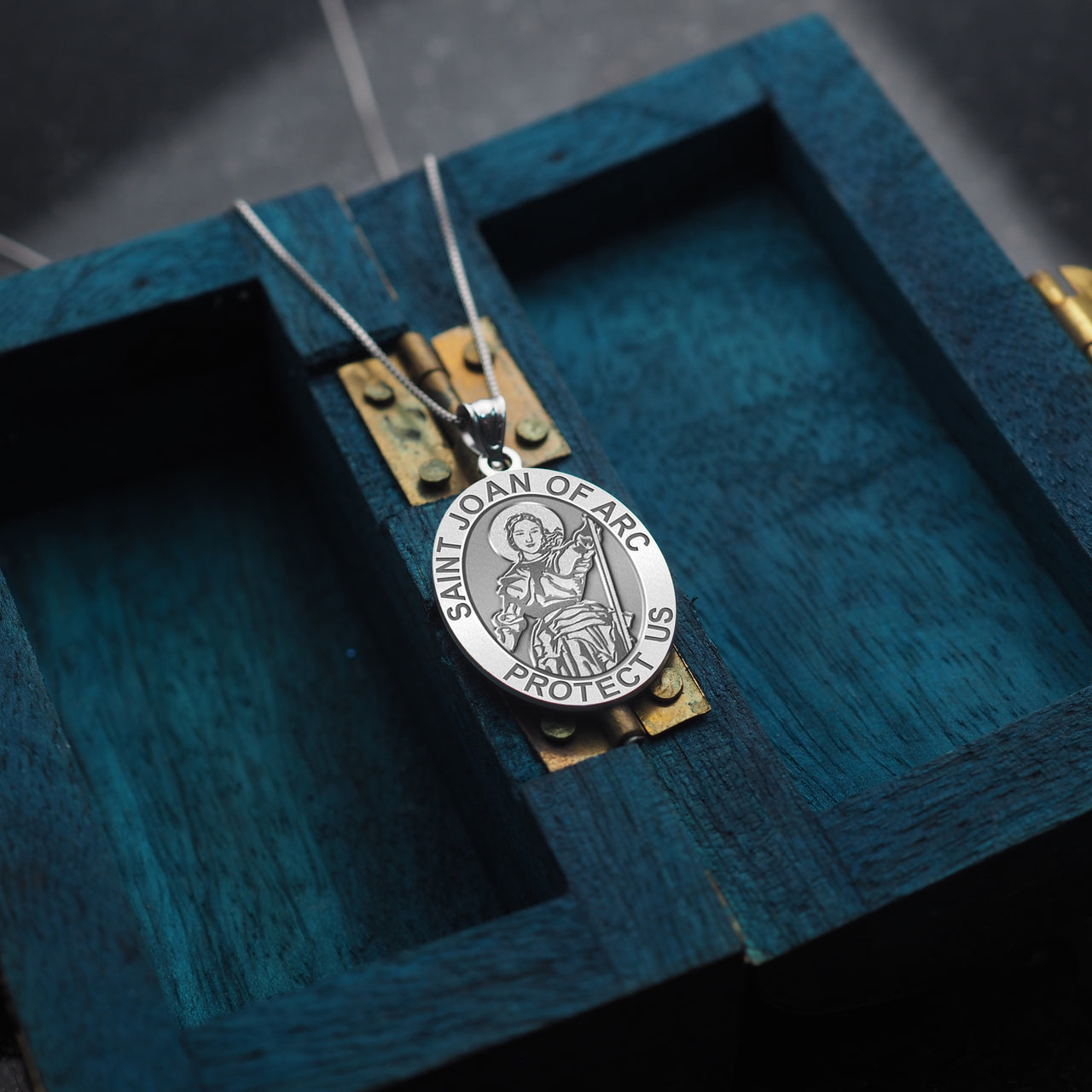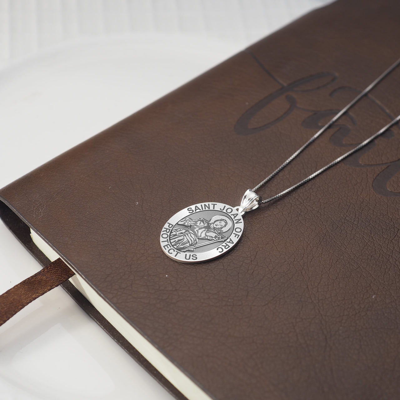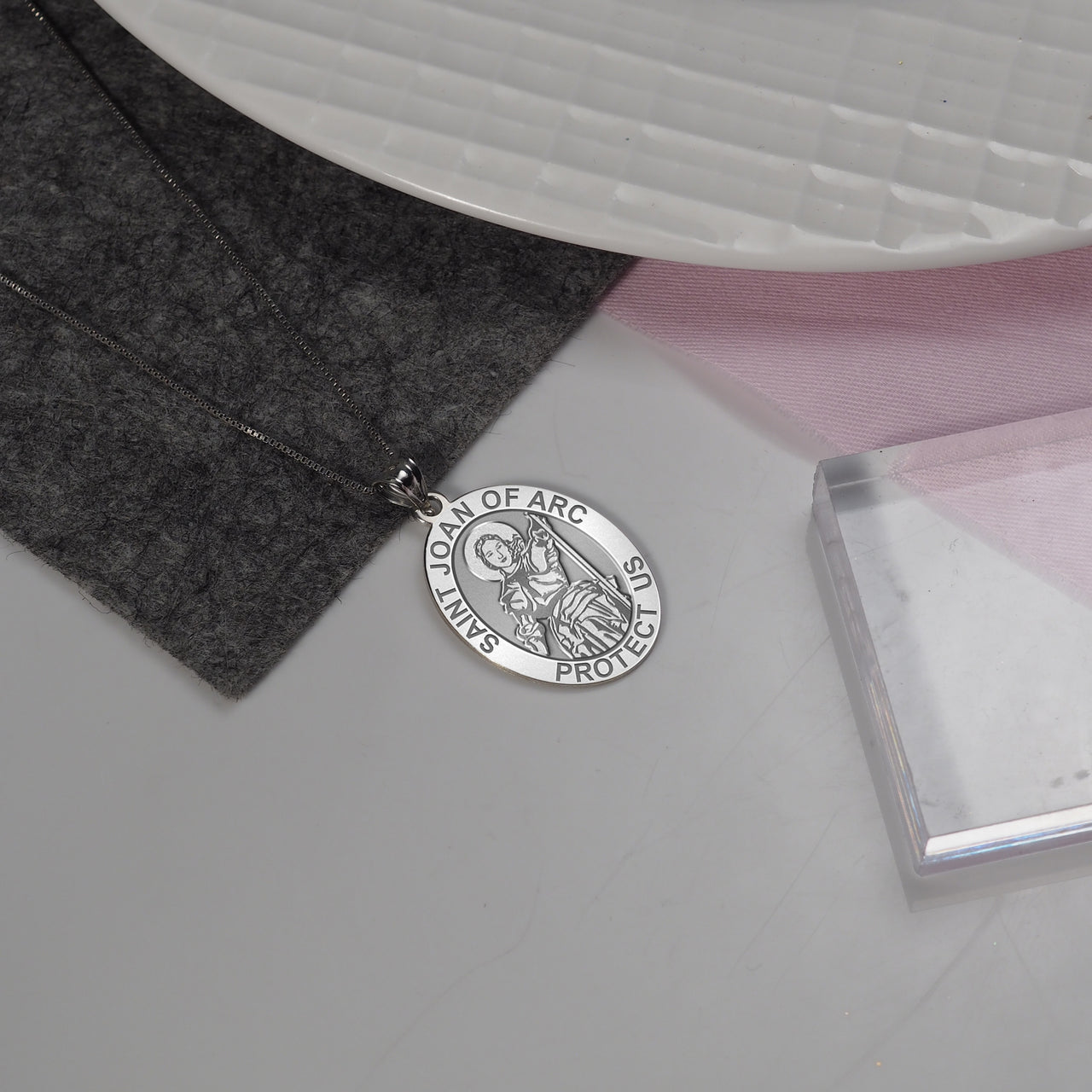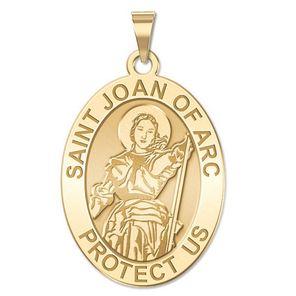 All Religious Medals are Customizable. We can change the spelling, your language, names etc, ex: change "Pray for Us" to "Pray For Me". Just let us know in "special instructions"Joan of Arc, or Jehanne d'Arc in French, (c. 1412 May 30, 1431) also known as "the Maid of Orleans", was a 15th century virgin saint and national heroine of France. A peasant girl born in Eastern France, Joan led the French army to several important victories during the Hundred Years' War, claiming divine guidance, and was indirectly responsible for the coronation of King Charles VII. She was captured by the English and tried by an ecclesiastical court led by Bishop Pierre Cauchon, an English partisan; the court convicted her of heresy and she was burned at the stake by the English when she was nineteen years old. Twenty-four years later, the Holy See reviewed the decision of the ecclesiastical court, found her innocent, and declared her a martyr. She was beatified in 1909 and later canonized in 1920. She is patron saint of captives; France; martyrs; opponents of Church authorities; people ridiculed for their piety; prisoners; rape victims; soldiers; Women Appointed for Voluntary Emergency Service; Women's Army Corpscity of San Antonio.