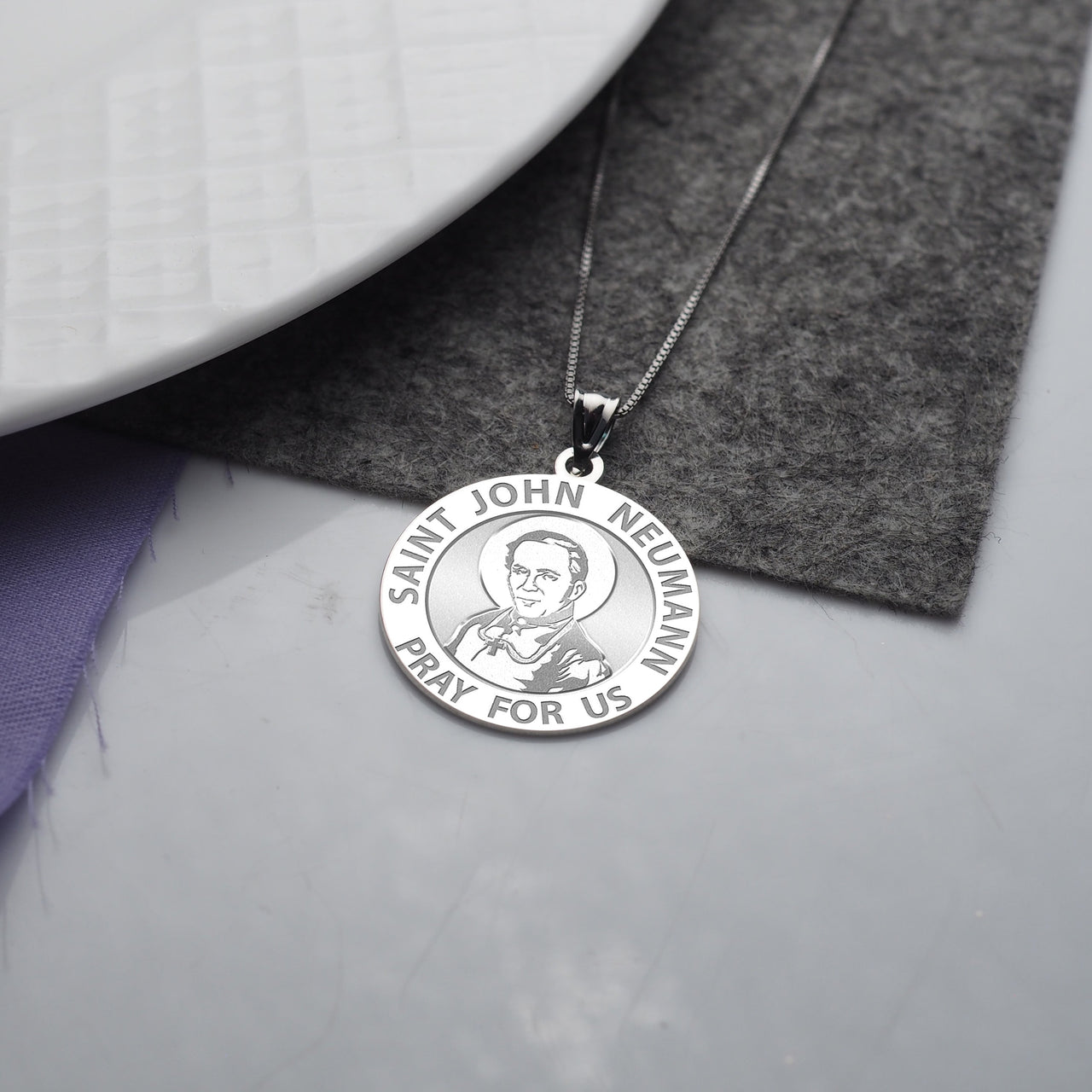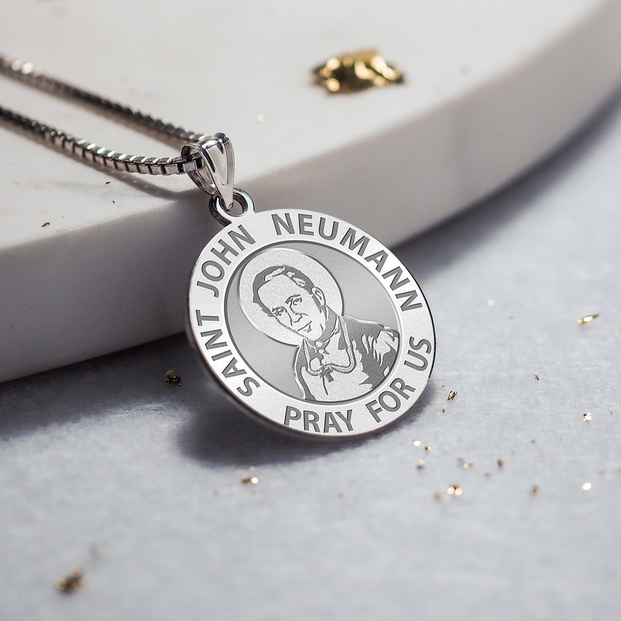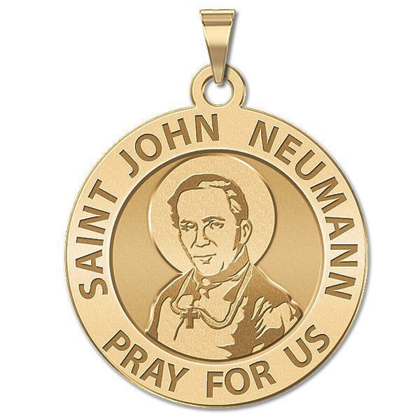 All Religious Medals are Customizable. We can change the spelling, your language, names etc, ex: change "Pray for Us" to "Pray For Me". Just let us know in "special instructions"Saint John Nepomucene Neumann (German: Johannes Nepomuk Neumann; Czech: Jan Nepomuck Neumann; March 28, 1811 January 5, 1860) was a Redemptorist missionary to the United States who became the fourth Bishop of Philadelphia (1852-60) and the first American bishop to be canonized. While Bishop of Philadelphia, Neumann founded the first Catholic diocesan school system in the United States. His surname is properly pronounced "Noi-mahn" as opposed to "New-man". Neumann was beatified by Pope Paul VI during the Second Vatican Council on October 13, 1963. He was canonized by Pope Paul VI on June 19, 1977. His feast day is January 5. Following his canonization, the National Shrine of St. John Neumann was constructed at the Parish of St. Peter the Apostle, which is located at the corner of 5th Street and Girard Avenue in the Northern Liberties section of Philadelphia. The remains of St. John Neumann rest under the main altar of the shrine within a glass-enclosed cavity.