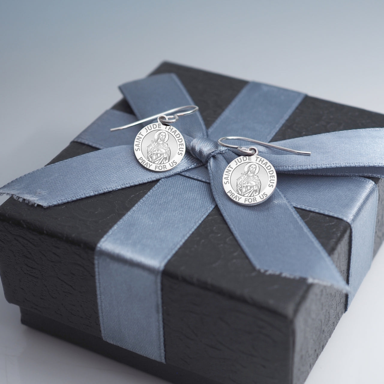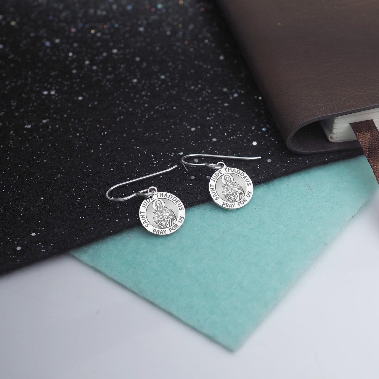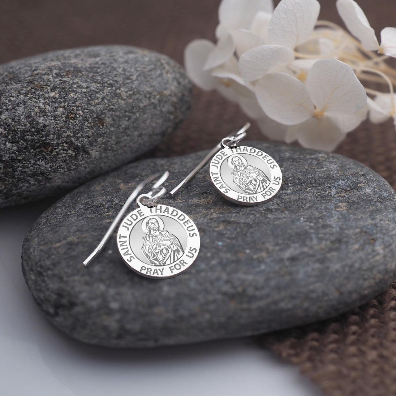 - Saint Jude was one of the Twelve Apostles of Jesus. He is generally identified with Thaddeus, and is also variously called Jude of James, Jude Thaddaeus , Judas Thaddaeus or Lebbaeus. He is sometimes identified with Jude, brother of Jesus, but is clearly distinguished from Judas Iscariot, another disciple and later the betrayer of Jesus. The Armenian Apostolic Church honours Thaddeus along with Saint Bartholomew as its patron saints. In the Roman Catholic Church he is the patron saint of desperate cases and lost causes. Saint Jude's attribute is a club. He is also often shown in icons with a flame around his head. This represents his presence at Pentecost, when he received the Holy Spirit with the other apostles. Occasionally he is represented holding an axe or halberd, as he was brought to death by one of these weapons. In some instances he may be shown with a scroll or a book (the Epistle of Jude) or holding a carpenter's rule. Price Per Pair Each Earring is 2/3" inch (size of a dime)