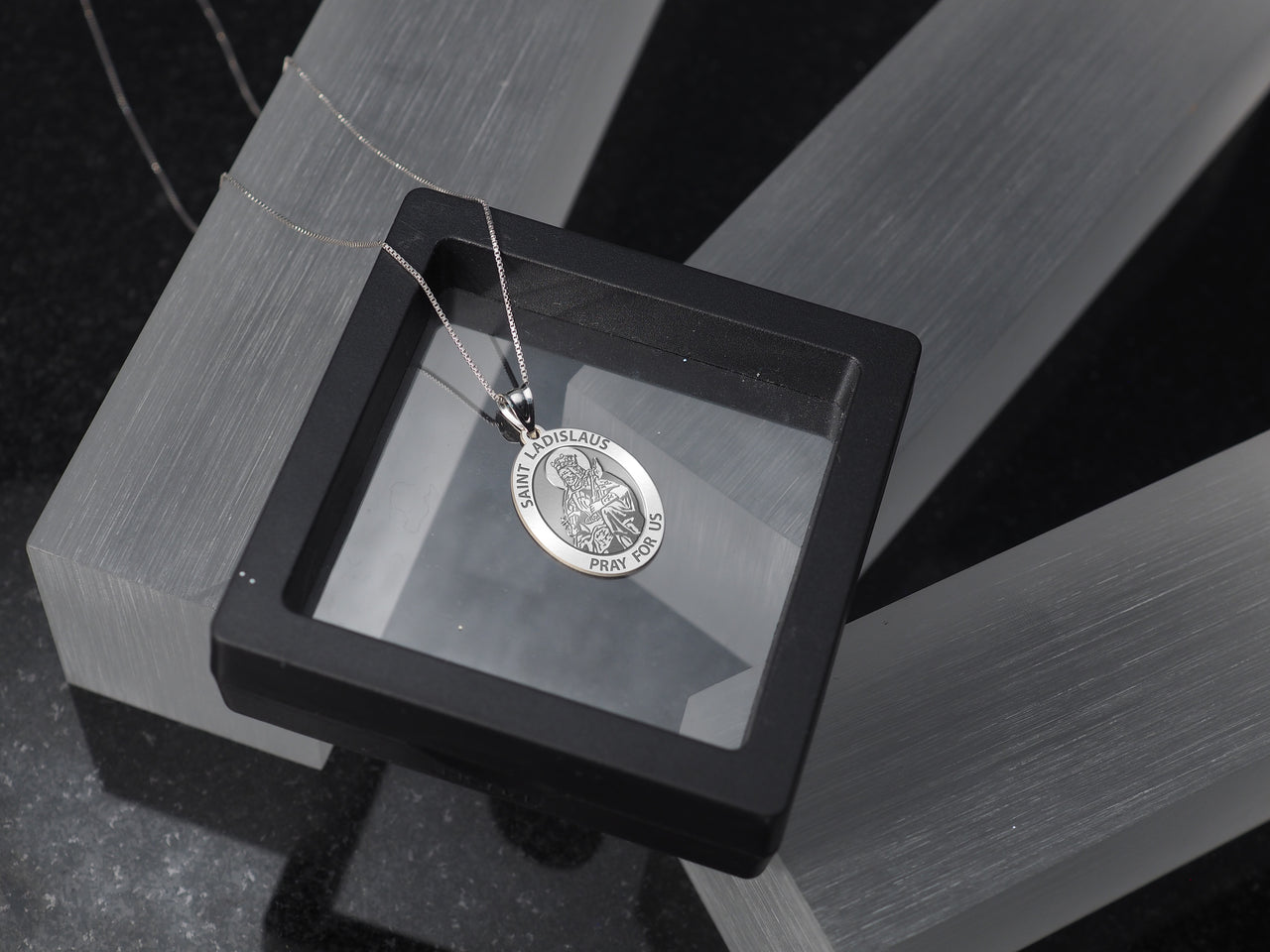 All Religious Medals are Customizable. We can change the spelling, your language, names etc, ex: change "Pray for Us" to "Pray For Me". Just let us know in "special instructions"Saint Ladislaus I is one of the most respected kings of Hungary. Before his ascension to the throne, he was the main advisor of his brother, Gza I of Hungary, who was fighting against their cousin, King Solomon of Hungary. When his brother died, his followers proclaimed Ladislaus king according to the Hungarian tradition that gave precedence to the eldest member of the royal family to the deceased king's sons. Following a long period of civil wars, he strengthened the royal power in his kingdom by introducing severe legislation. He also could expand his rule over Croatia. After his canonisation, Ladislaus became the model of the chivalrous king in Hungary.