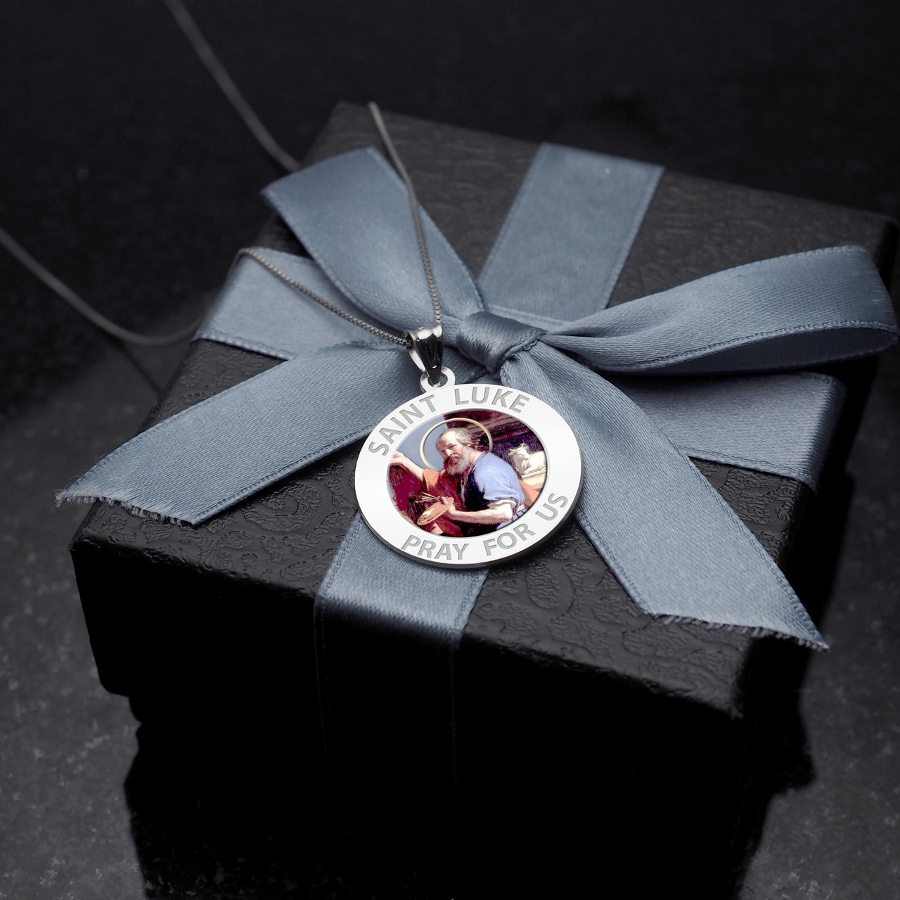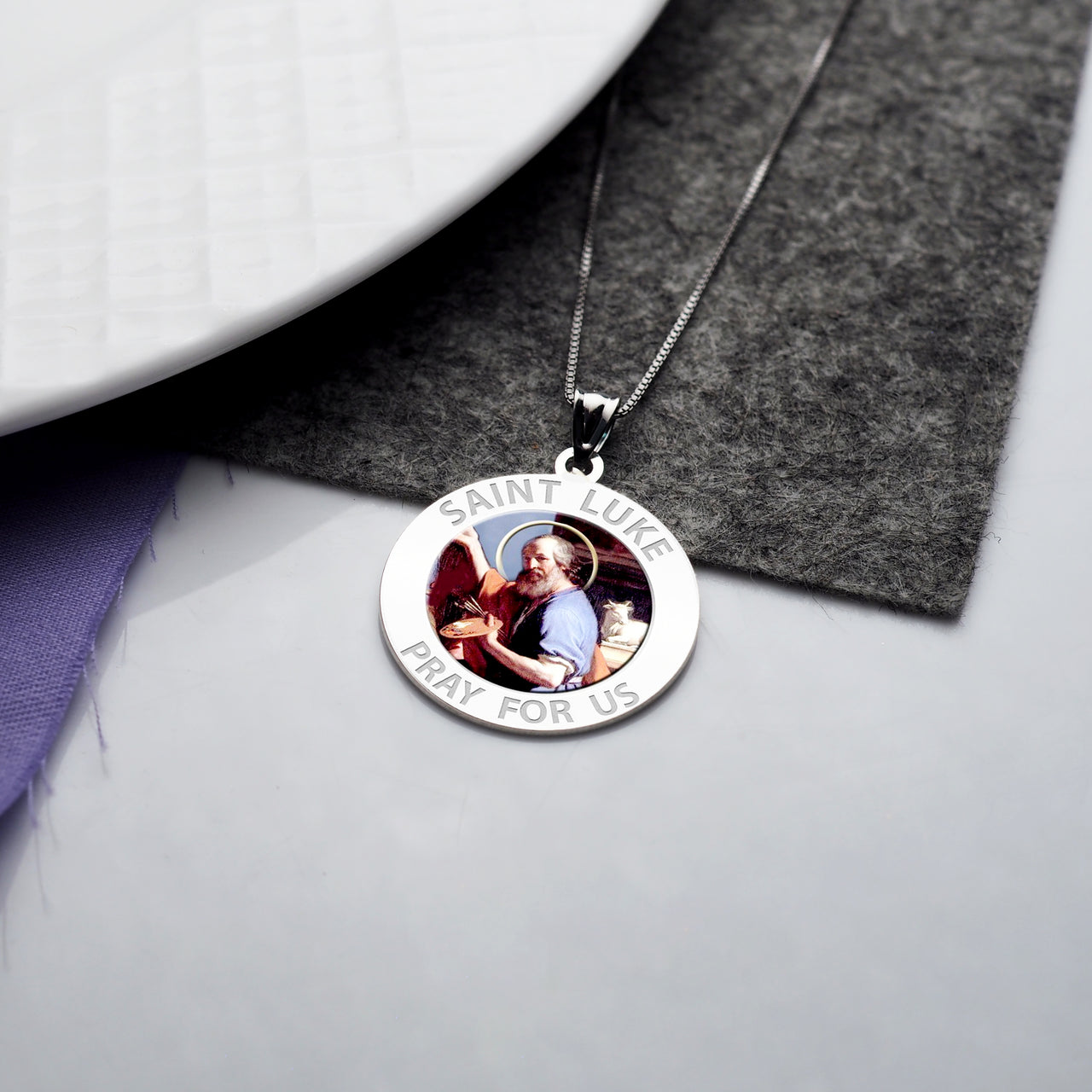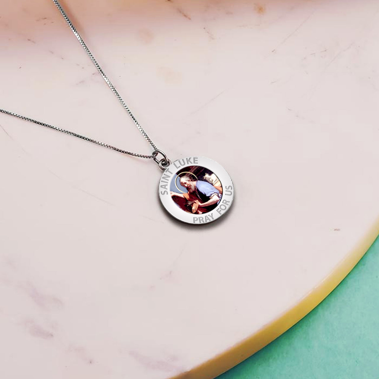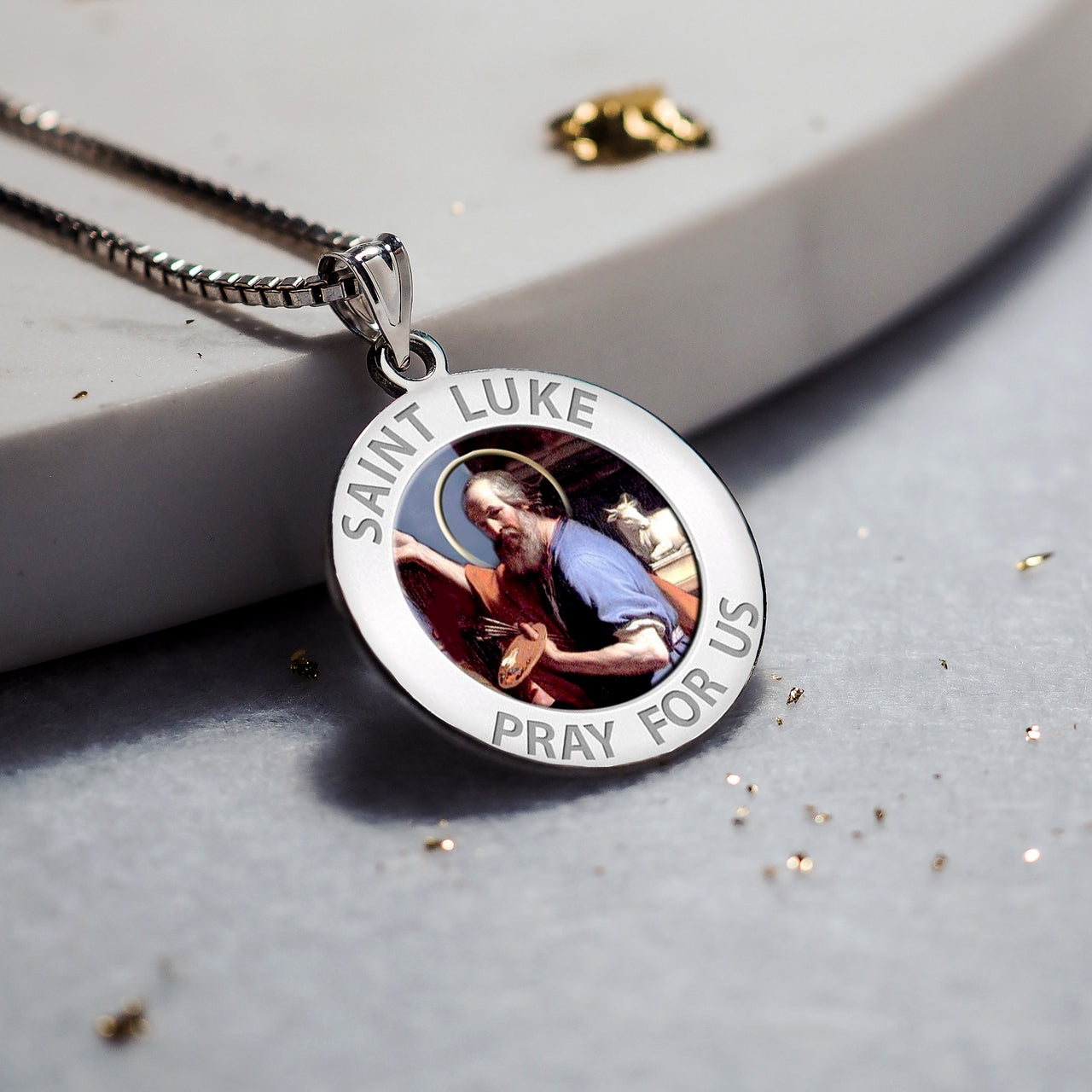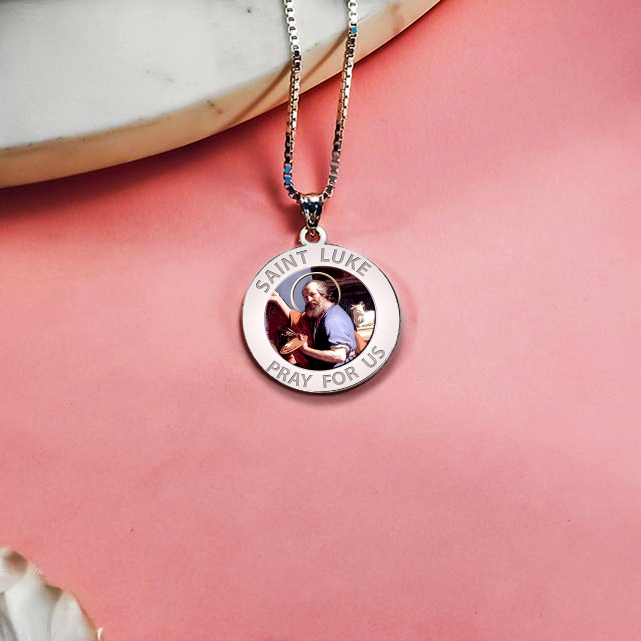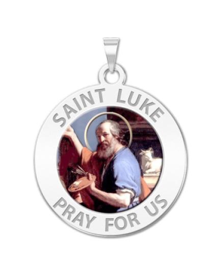 All Religious Medals are Customizable. We can change the spelling, your language, names etc, ex: change "Pray for Us" to "Pray For Me". Just let us know in "special instructions"Color Laser is a patent pending process, color is guaranteed to last foreverColor Medals can be worn in the pool, shower, etc. without affecting the image. We guarantee it.Saint Luke was an early Christian leader who is said by tradition to be the author of both the Gospel of Luke and the Acts of the Apostles, the third and the fifth books, respectively, of the New Testament. The composition of the writings, as well as the range of vocabulary used, indicate that the author was an educated man. The quote in the Letter of Paul to the Colossians differentiating between Luke and other colleagues "of the circumcision" has caused many to speculate that this indicates Luke was a Gentile. If this were true, it would make Luke the only writer of the New Testament who can clearly be identified as not being Jewish. However, that is not the only possibility. The phrase could just as easily be used to differentiate between those Christians who strictly observed the rituals of Judaism and those who didn't. He is Patron Saint of Artists, Physicians, Surgeons, and others
