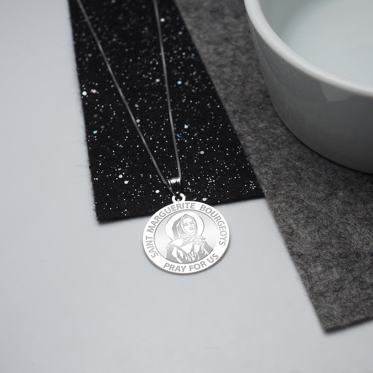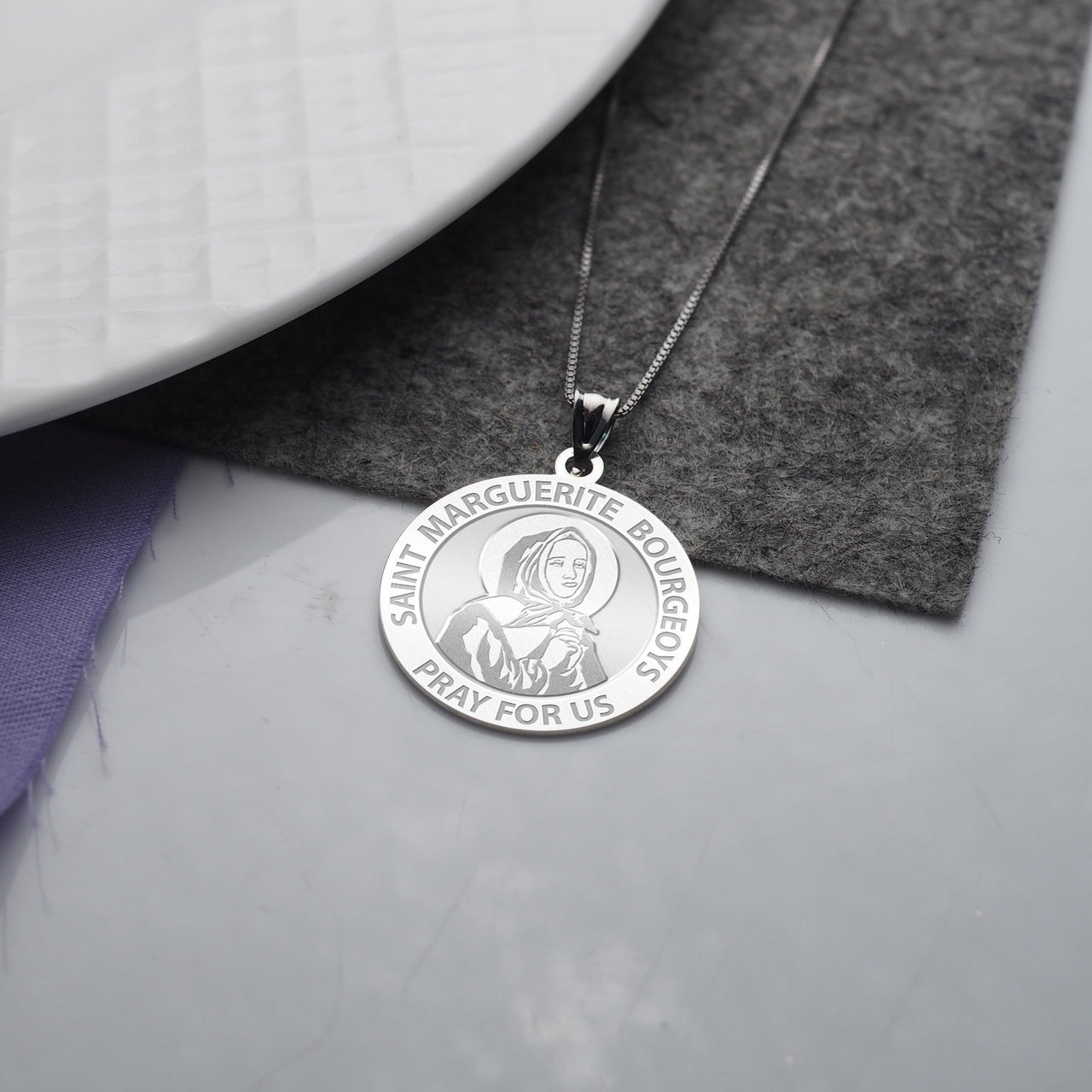 All Religious Medals are Customizable. We can change the spelling, your language, names etc, ex: change "Pray for Us" to "Pray For Me". Just let us know in "special instructions"Saint Marguerite Bourgeoys (17 April 1620 12 January 1700, feast day: January 12) was born the sixth of twelve children of devout parents. When Marguerite was 19 her mother died and the young lady cared for her brothers and sisters. Her father, a candle maker died when she was twenty-seven. A few years later, the governor of Montreal, Canada, Paul Chomedey de Maisonneuve was in France looking for teachers for the New World. He invited Marguerite to come to Montreal to teach school and religion classes. She accepted the offer. Marguerite gave away her share of her inheritance from her parents to other members of the family and, in 1653, sailed for New France. On arriving, she initiated the construction of the Notre-Dame-de-Bon-Secours Chapel in honour of Our Lady of Good Help (Our Lady of Perpetual Help). She opened her first school in 1658 and sailed back to France in 1659 in order to recruit more teachers, and returned with four. In 1670, she went to France again, and brought back six more women. These women braved dangerous travel and were to become the first Sisters of the Congregation of Notre Dame. Marguerite and her sisters helped people in the colony survive when food was scarce, opened a vocational school, taught young people how to run a home and farm. Marguerite's congregation grew to 18 sisters, seven of them Canadian. They opened missions, and two sisters taught at the Native American school. Soon after, Marguerite received the first two Native American women into the congregation. In 1693, Mother Marguerite handed over her congregation to her successor, Marie Barbier, the first Canadian to join the order. The congegration's religious rule