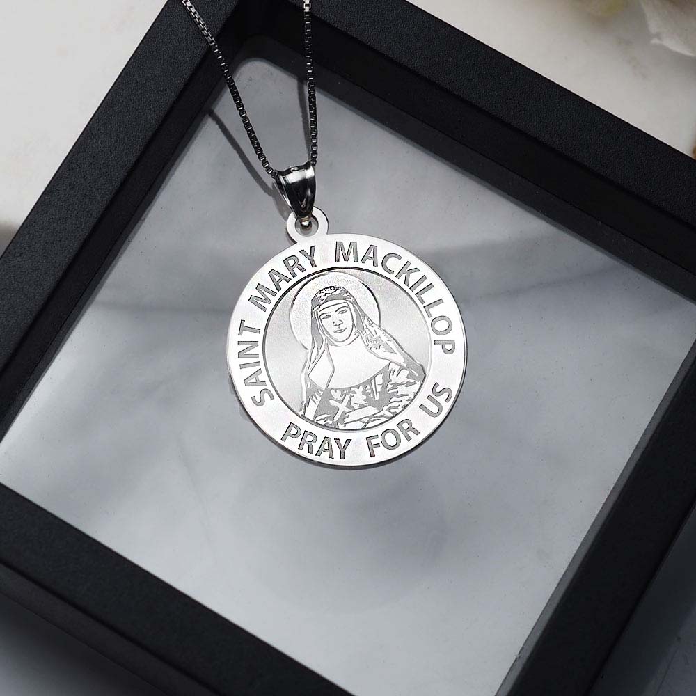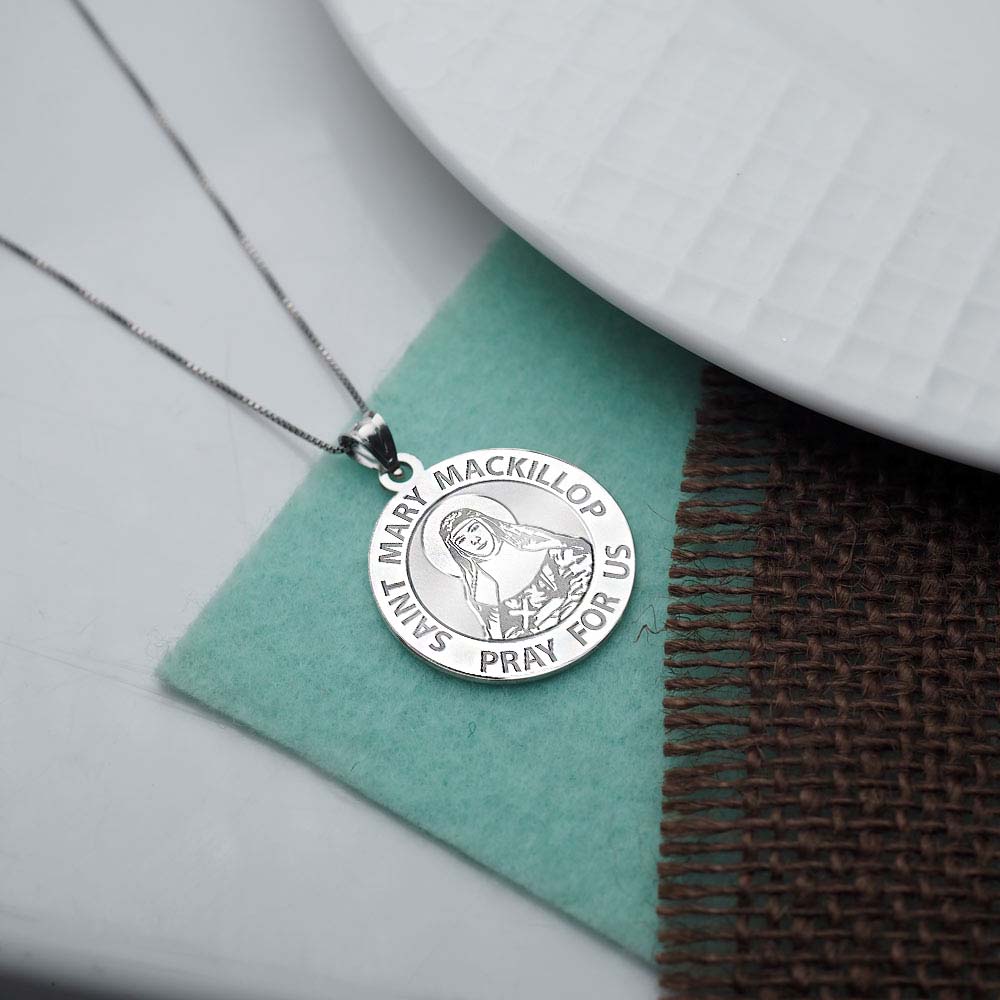 All Religious Medals are Customizable. We can change the spelling, your language, names etc, ex: change "Pray for Us" to "Pray For Me". Just let us know in "special instructions"Blessed Mary MacKillop (15 January 1842 8 August 1909) was an Australian Roman Catholic nun who, together with Father Julian Tenison Woods, founded the Sisters of St Joseph of the Sacred Heart. Since her death she has attracted much veneration in Australia and internationally. MacKillop is the only Australian to have been beatified (in 1995). On 19 December 2009, Pope Benedict XVI approved the Church's recognition of a second miracle attributed to her intercession. On 17 July 2008, Pope Benedict XVI prayed at her tomb during his visit to Sydney for World Youth Day 2008. It was announced on 19 February 2010 that her canonisation is due to be formally declared on 17 October 2010, making her the first Australian saint. It has been announced that after her canonisation she will be known as Saint Mary of the Cross (MacKillop).