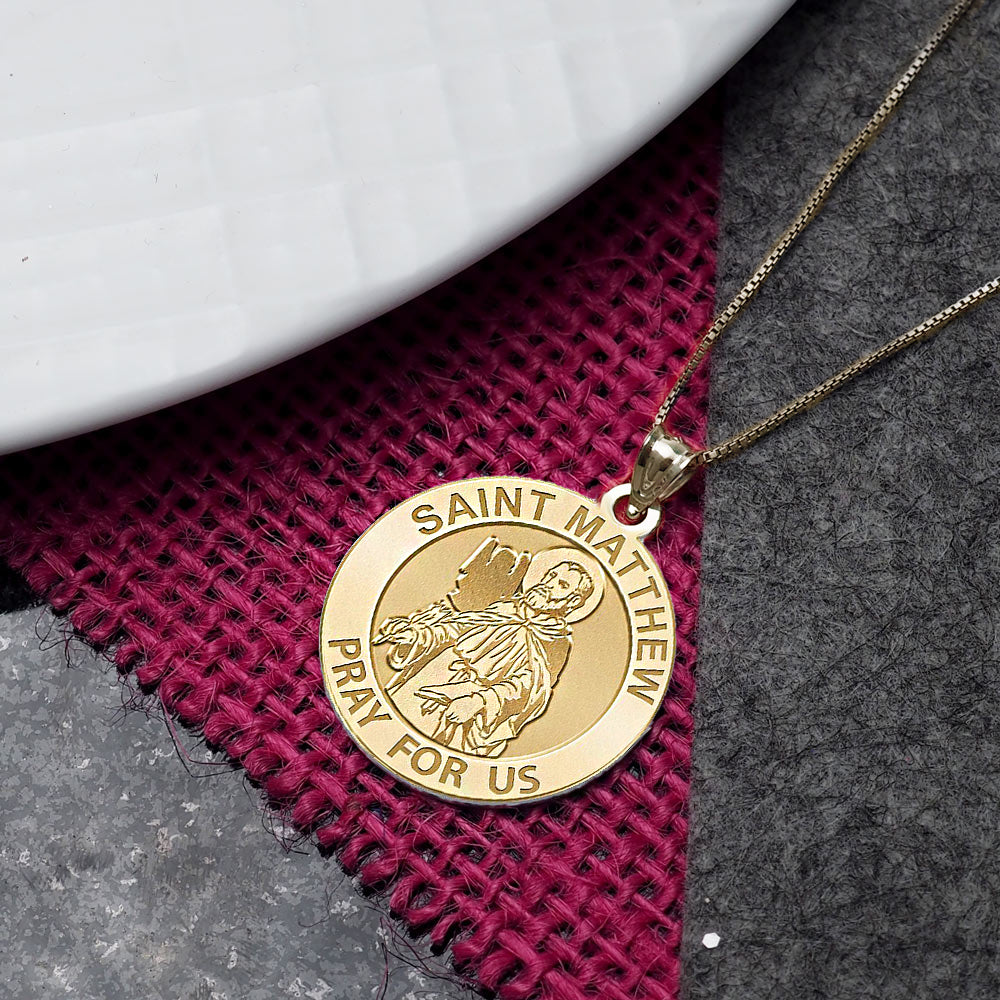 All Religious Medals are Customizable. We can change the spelling, your language, names etc, ex: change "Pray for Us" to "Pray For Me". Just let us know in "special instructions"Saint Matthew, is a Christian figure, and one of Jesus's Twelve Apostles. He is credited by tradition with writing the Gospel of Matthew, and is identified in that gospel as being the same person as Levi the toll collector. He is the patron saint for Accountants.