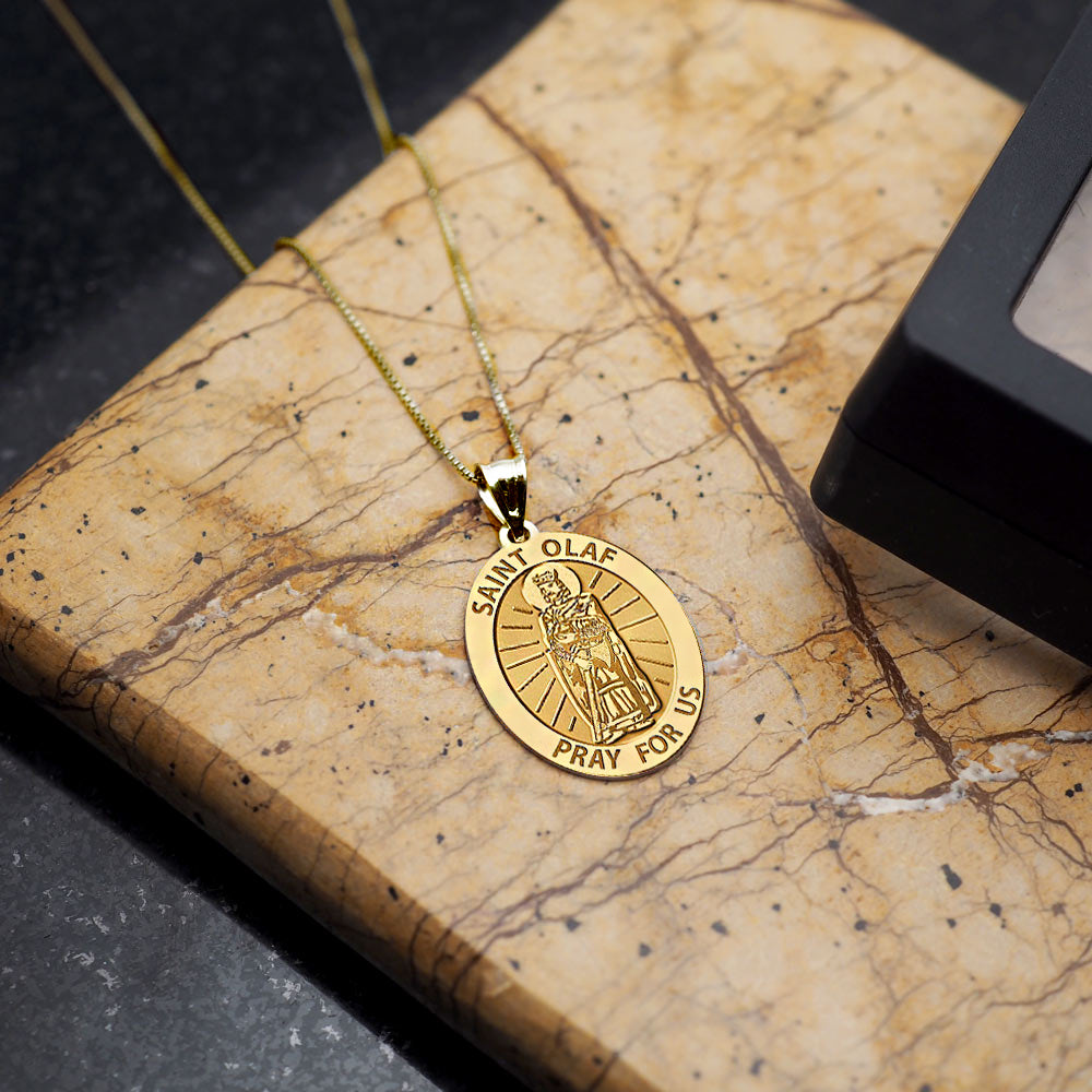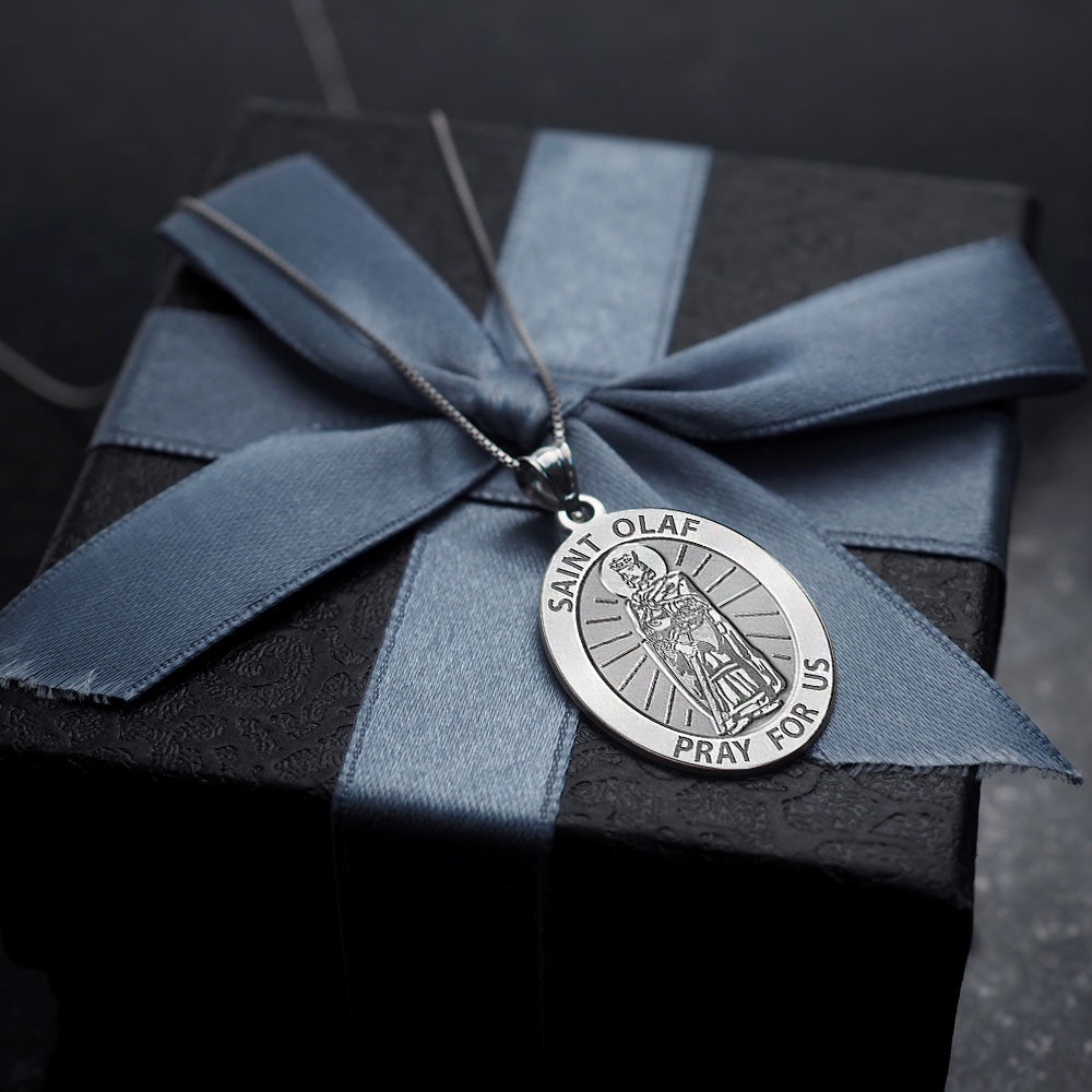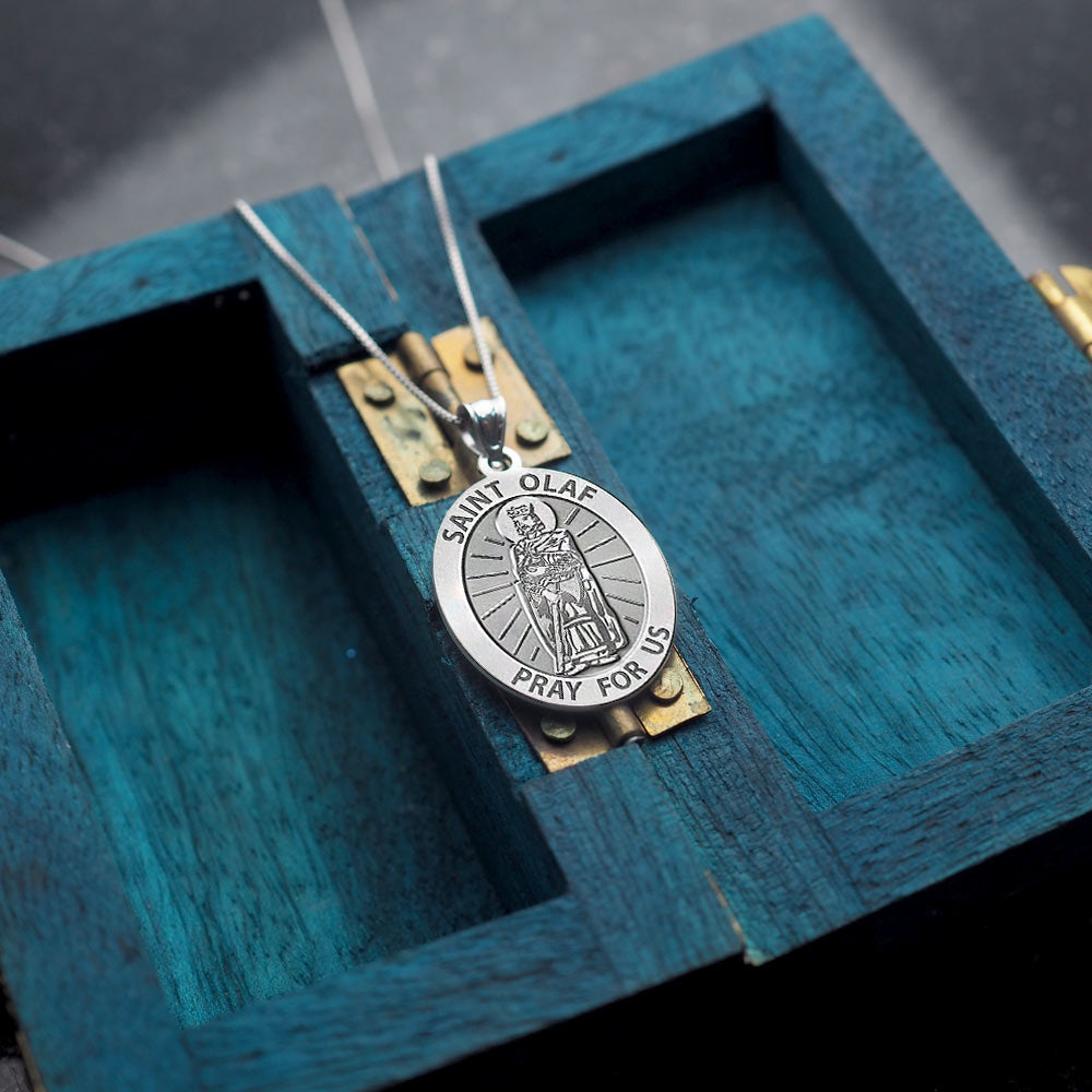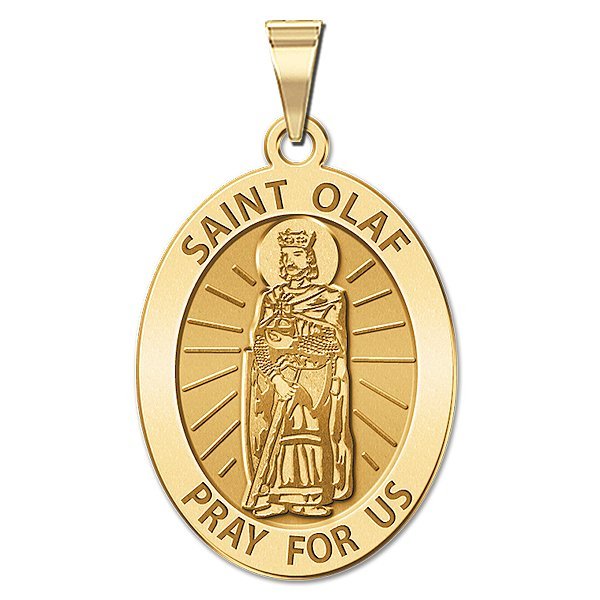 All Religious Medals are Customizable. We can change the spelling, your language, names etc, ex: change "Pray for Us" to "Pray For Me". Just let us know in "special instructions"Olaf II Haraldsson (995 29 July 1030) was King of Norway from 1015 to 1028. He was posthumously given the title Rex Perpetuus Norvegiae (English: Norway's Eternal King) and canonised in Nidaros (Trondheim) by Bishop Grimkell, one year after his death in the Battle of Stiklestad on 29 July 1030. Enshrined in Nidaros Cathedral. Olaf's local canonisation was in 1164 confirmed by Pope Alexander III, making him a universally recognized saint of the Catholic Church. The exact position of Saint Olaf's grave in Nidaros has been unknown since 1568, due to the Lutheran iconoclasm in 153637. Saint Olaf has today a prominent legal as well as cultural position in the country. He is symbolised by the axe in Norway's coat of arms, and the Olsok (29 July) is still his day of celebration. The Order of St. Olav is named after him.