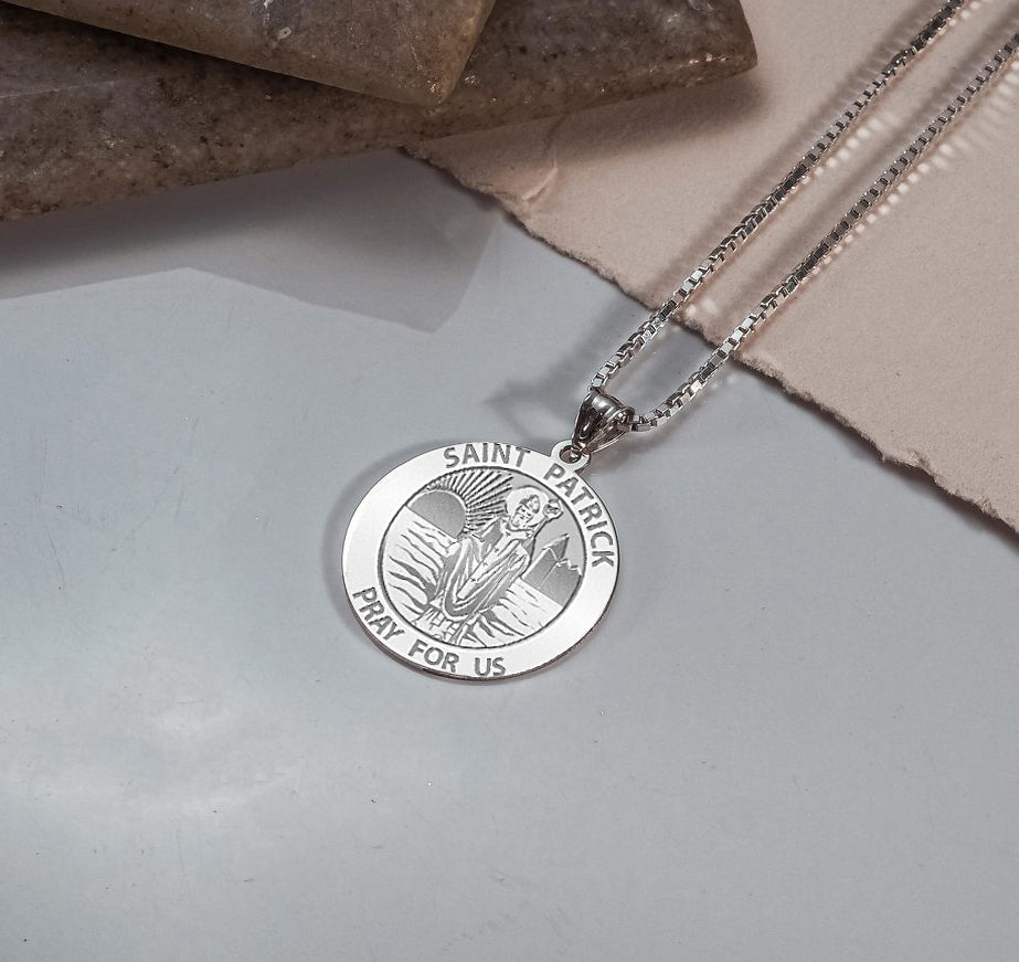 All Religious Medals are Customizable. We can change the spelling, your language, names etc, ex: change "Pray for Us" to "Pray For Me". Just let us know in "special instructions"Saint Patrick was a Christian missionary and is the patron saint of Ireland along with Brigid of Kildare and Columba. Patrick was born in Roman Britain. When he was about sixteen he was captured by Irish raiders and taken as a slave to Ireland, where he lived for six years before escaping and returning to his family. He entered the church, as his father and grandfather had before him, becoming a deacon and a bishop. He later returned to Ireland as a missionary, working in the north and west of the island, but little is known about the places where he actually worked and no link can be made with Patrick and any church. By the eighth century he had become the patron saint of Ireland. The Irish monastery system evolved after the time of Patrick and the Irish church did not develop the diocesan model that Patrick and the other early missionaries had tried to establish
