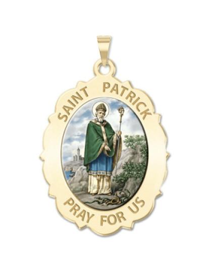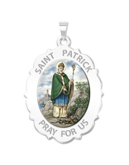 All Religious Medals are Customizable. We can change the spelling, your language, names etc, ex: change "Pray for Us" to "Pray For Me". Just let us know in "special instructions"Color Laser is a patent pending process, color is guaranteed to last foreverColor Medals can be worn in the pool, shower, etc. without affecting the image. We guarantee it.Saint Patrick was a Christian missionary and is the patron saint of Ireland along with Brigid of Kildare and Columba. Patrick was born in Roman Britain. When he was about sixteen he was captured by Irish raiders and taken as a slave to Ireland, where he lived for six years before escaping and returning to his family. He entered the church, as his father and grandfather had before him, becoming a deacon and a bishop. He later returned to Ireland as a missionary, working in the north and west of the island, but little is known about the places where he actually worked and no link can be made with Patrick and any church. By the eighth century he had become the patron saint of Ireland. The Irish monastery system evolved after the time of Patrick and the Irish church did not develop the diocesan model that Patrick and the other early missionaries had tried to establish