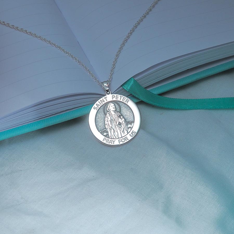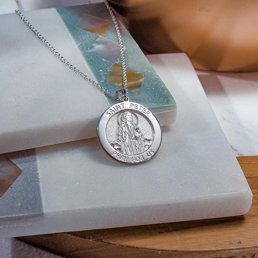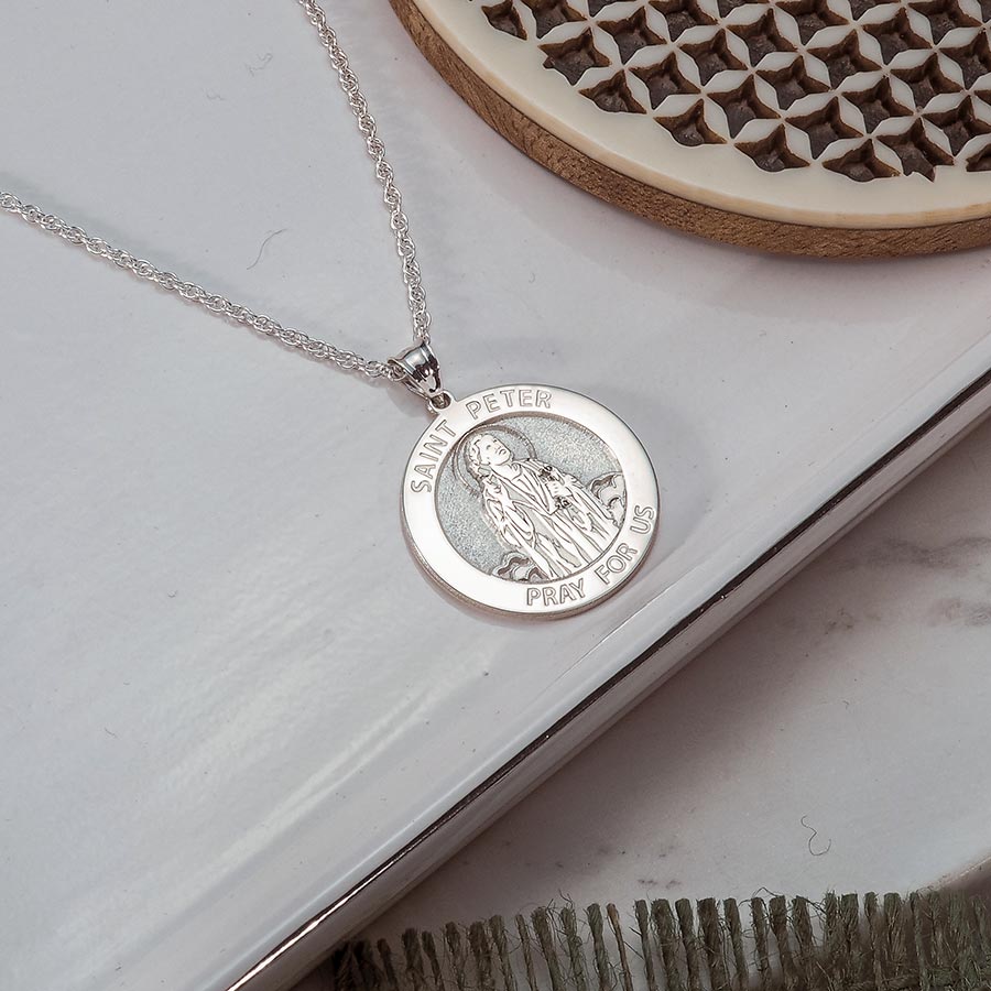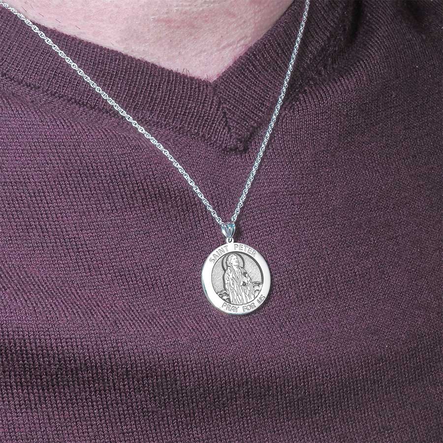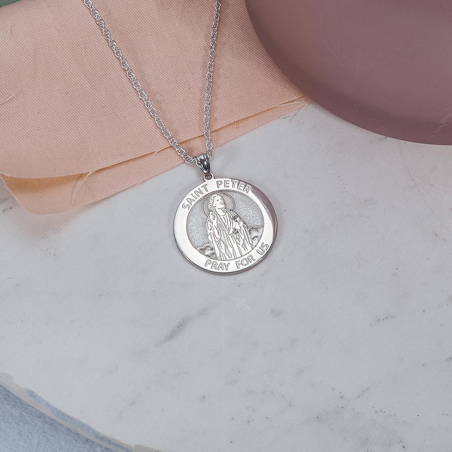 All Religious Medals are Customizable. We can change the spelling, your language, names etc, ex: change "Pray for Us" to "Pray For Me". Just let us know in "special instructions"The Apostle Peter, also known as Saint Peter, Shimon "Keipha" Ben-Yonah/Bar-Yonah, Simon Peter, Cephas and Keiphaoriginal name Shimon or Simeon (Hebrew: ) ( (Acts 15:14)was one of the Twelve Apostles whom Jesus chose as his original disciples. His life is prominently featured in the New Testament Gospels and the Acts of the Apostles. Peter was a Galilean fisherman assigned a leadership role by Jesus (Matthew 16:18; John 21:1516). Many within the early Church, such as St. Irenaeus[1], allege, assert, or argue for his primacy among the apostles.