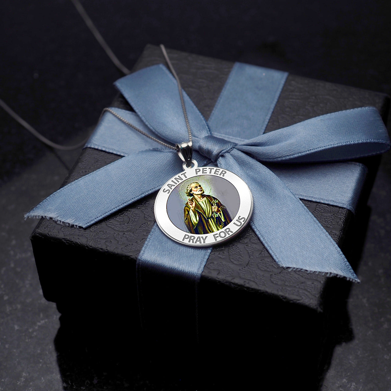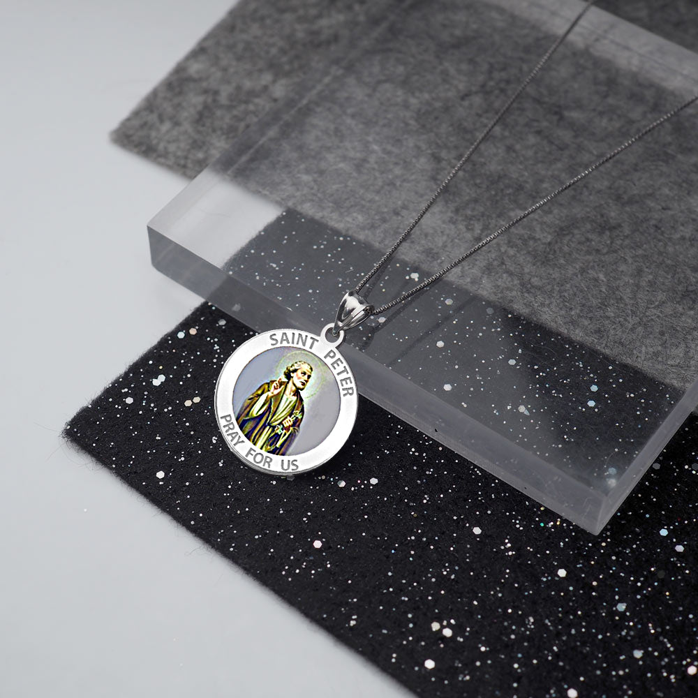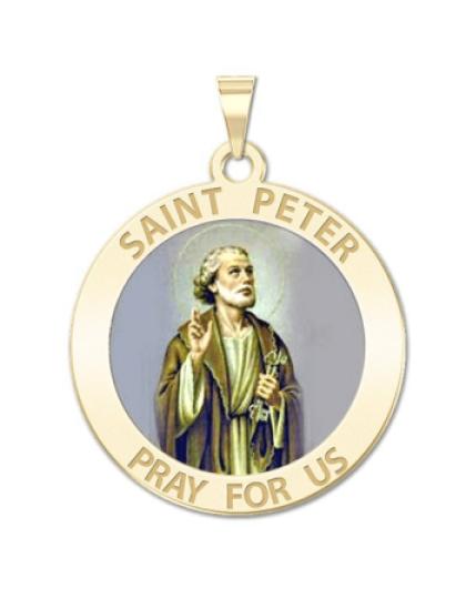 All Religious Medals are Customizable. We can change the spelling, your language, names etc, ex: change "Pray for Us" to "Pray For Me". Just let us know in "special instructions"Color Laser is a patent pending process, color is guaranteed to last foreverColor Medals can be worn in the pool, shower, etc. without affecting the image. We guarantee it.The Apostle Peter, also known as Saint Peter, Shimon "Keipha" Ben-Yonah/Bar-Yonah, Simon Peter, Cephas and Keiphaoriginal name Shimon or Simeon (Hebrew: ) ( (Acts 15:14)was one of the Twelve Apostles whom Jesus chose as his original disciples. His life is prominently featured in the New Testament Gospels and the Acts of the Apostles. Peter was a Galilean fisherman assigned a leadership role by Jesus (Matthew 16:18; John 21:1516). Many within the early Church, such as St. Irenaeus[1], allege, assert, or argue for his primacy among the apostles.