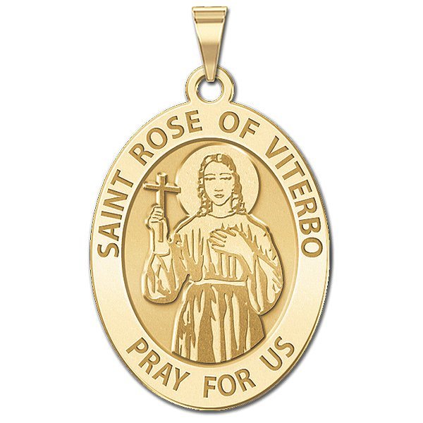All Religious Medals are Customizable. We can change the spelling, your language, names etc, ex: change "Pray for Us" to "Pray For Me". Just let us know in "special instructions"Saint Rose of Viterbo (1235March 6, 1252) was a virgin saint, born at Viterbo, Italy. The chronology of her life must always remain uncertain, as the Acts of her canonization, the chief historical sources, record no dates. Those given above are accepted by the best authorities. She wished to enter the monastery of St. Mary of the Roses, but was refused because of her poverty. She agreed to her rejection, nonetheless foretelling her admission to the monastery after her death. The remainder of her life was spent in the cell in her father's house, where she died. The process of her canonization was opened in that year by Pope Innocent IV, but was not definitively undertaken until 1457. Her feast is celebrated on 4 September, when her bodybelieved by the faithful to be still incorrupt, despite the passage of timeis carried in procession through Viterbo. Rose of Viterbo is one of the religious figures featured in the award-winning series of saint plays by Erik Ehn. The play celebrating her life premiered in October 2008 at Goshen College.