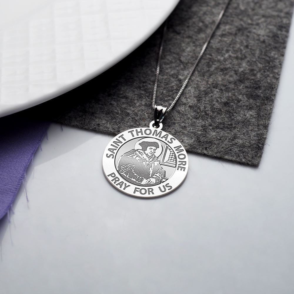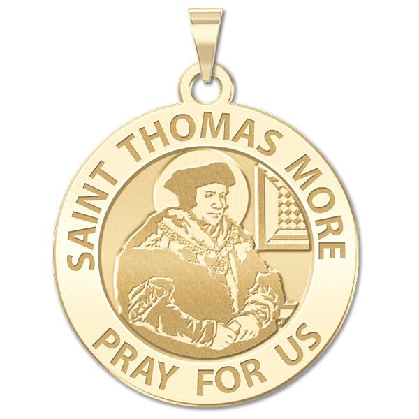 All Religious Medals are Customizable. We can change the spelling, your language, names etc, ex: change "Pray for Us" to "Pray For Me". Just let us know in "special instructions"Saint Thomas More (7 February 1478 6 July 1535) was an English lawyer, author, and statesman who in his lifetime gained a reputation as a leading Renaissance humanist scholar, and occupied many public offices, including Lord Chancellor (15291532). More coined the word "utopia", a name he gave to an ideal, imaginary island nation whose political system he described in the eponymous book published in 1516. He was beheaded in 1535 when he refused to sign the Act of Supremacy that declared King Henry VIII Supreme Head of the Church of England. In 1935, four hundred years after his death, Pope Pius XI canonized More in the Roman Catholic Church; More was declared Patron Saint of politicians and statesmen by Pope John Paul II in 1980. 1969 saw the inclusion of More's name in the General Roman Calendar, with a Memorial in which he is venerated with Saint John Fisher on 22 June, the day of the latter's death. In 1980, More was added to the Church of England's calendar of saints, again jointly with John Fisher, but on July 6, the day of More's death.