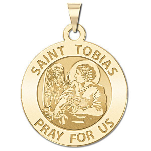 All Religious Medals are Customizable. We can change the spelling, your language, names etc, ex: change "Pray for Us" to "Pray For Me". Just let us know in "special instructions"Saint Tobias was particularly noted for his diligence in attempting to provide proper burials for fallen Israelites who had been slain by Sennacherib, for which the king seized all his property and exiled him. After Sennacherib's death, he was allowed to return to Nineveh, but again buried a dead man who had been murdered on the street. That night, he slept in the open and was blinded by bird droppings that fell in his eyes. This put a strain on his marriage, and ultimately, he prayed for death. Meanwhile, in faraway Media, a young woman named Sarah prays for death in despair. She has lost seven husbands to the demon of lust, Asmodeus, who abducts and kills every man she marries on their wedding night before the marriage can be consummated. God sends the angel Raphael, disguised as a human, to heal Tobit and to free Sarah from the demon. The main narrative is dedicated to Tobit's son, Tobiah or Tobiyah (Greek: /Tobias), who is sent by his father to collect a sum of money that the latter had deposited some time previously in the far off land of Media. Raphael represents himself as Tobit's kinsman Azariah, and offers to aid and protect Tobias on his journey. Under the guidance of Raphael, Tobias makes the journey to Media, accompanied by his dog.