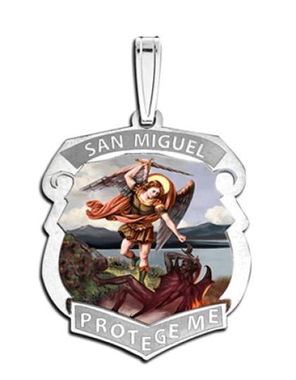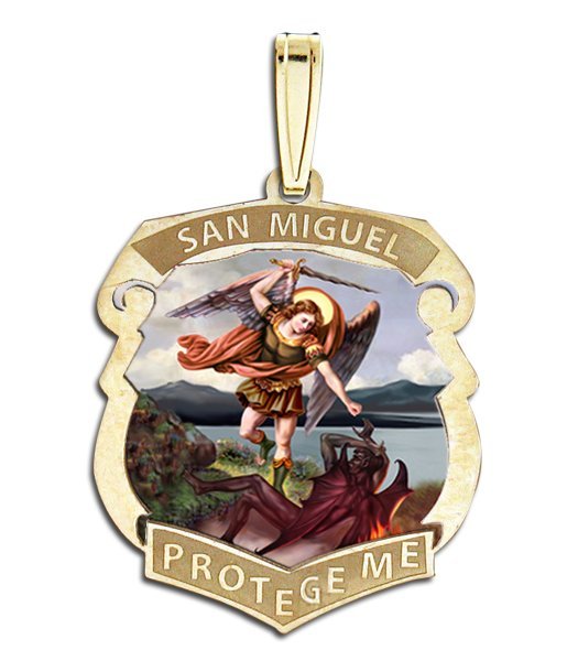 All Religious Medals are Customizable. We can change the spelling, your language, names etc, ex: change "Pray for Us" to "Pray For Me". Just let us know in "special instructions"Color Laser is a patent pending process, color is guaranteed to last foreverColor Medals can be worn in the pool, shower, etc. without affecting the image. We guarantee it.Esta medalla Slida del Santo Michael es el Patrono de Policas. Su nombre es hebreo para "quin est como Dios"? El es representado en el acto de derrotar al diablo. This Solid Saint Michael medal is the patron Saint of Policemen. His name is Hebrew for "who is like God?" He is represented in the act of defeating the devil.