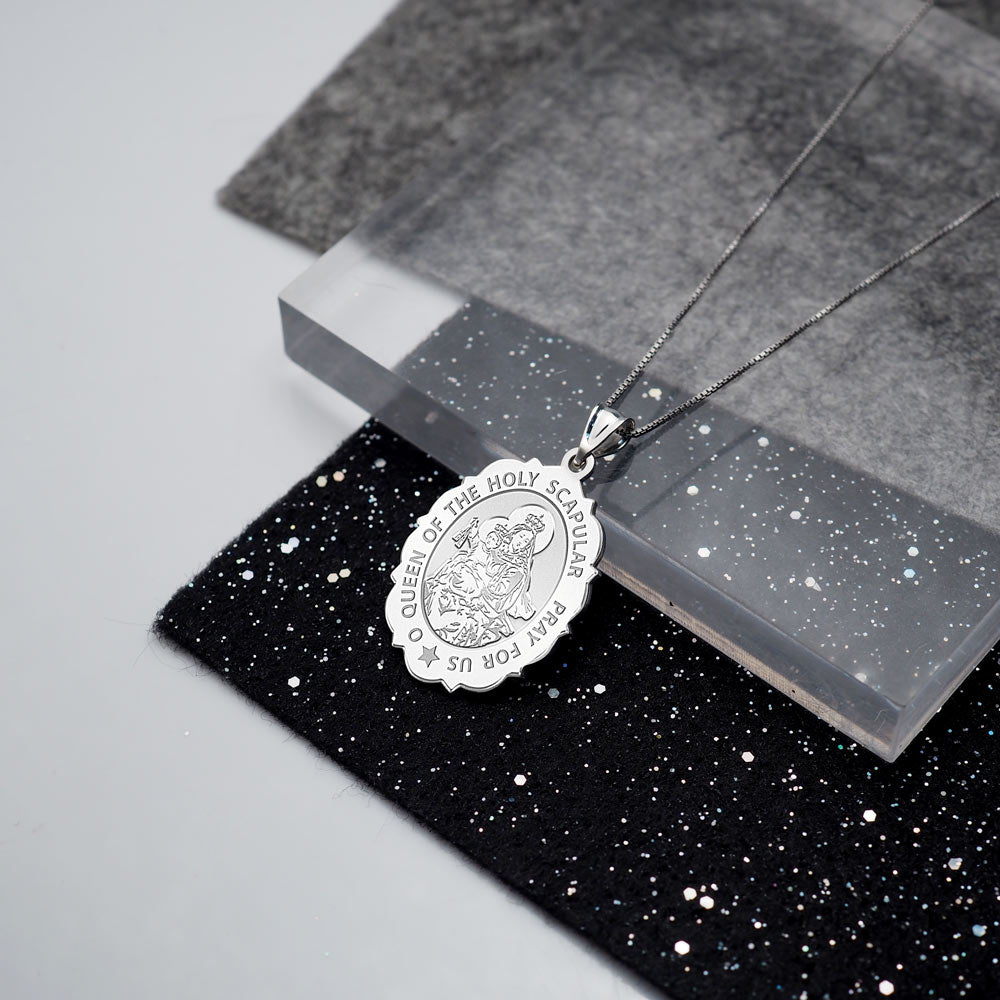 All Religious Medals are Customizable. We can change the spelling, your language, names etc, ex: change "Pray for Us" to "Pray For Me". Just let us know in "special instructions"The Front of the Medal features the image of Our Lady of Mt. Carmel and on the reverse side features the Sacred Heart of Jesus. According to a pious tradition the Blessed Virgin appeared to St. Simon Stock at Cambridge, England, on Sunday, 16 July, 1251. In answer to his appeal for help for his oppressed order, she appeared to him with a scapular in her hand and said: "Take, beloved son this scapular of thy order as a badge of my confraternity and for thee and all Carmelites a special sign of grace; whoever dies in this garment, will not suffer everlasting fire. It is the sign of salvation, a safeguard in dangers, a pledge of peace and of the covenant". This tradition appears in precise form for the first time in 1642, when the words of the Blessed Virgin were given in a circular of St. Simon Stock which he is said to have dictated to Peter Boyle, his secretary and confessor. It is widely believed that its general content remains a reliable pious tradition; in other words, that St. Simon Stock was given certain supernatural assurances: The special protection of the Blessed Virgin for his whole order and for all those wearing the Carmelite habit Special aid, especially in the hour of death, to those wearing the habit in her honour throughout life, so that they should be preserved from hell. Indirectly, this promise is extended to all who from devotion to the Mother of God should wear her habit or badge and be thus as if it were affiliated to the Carmelite Order.