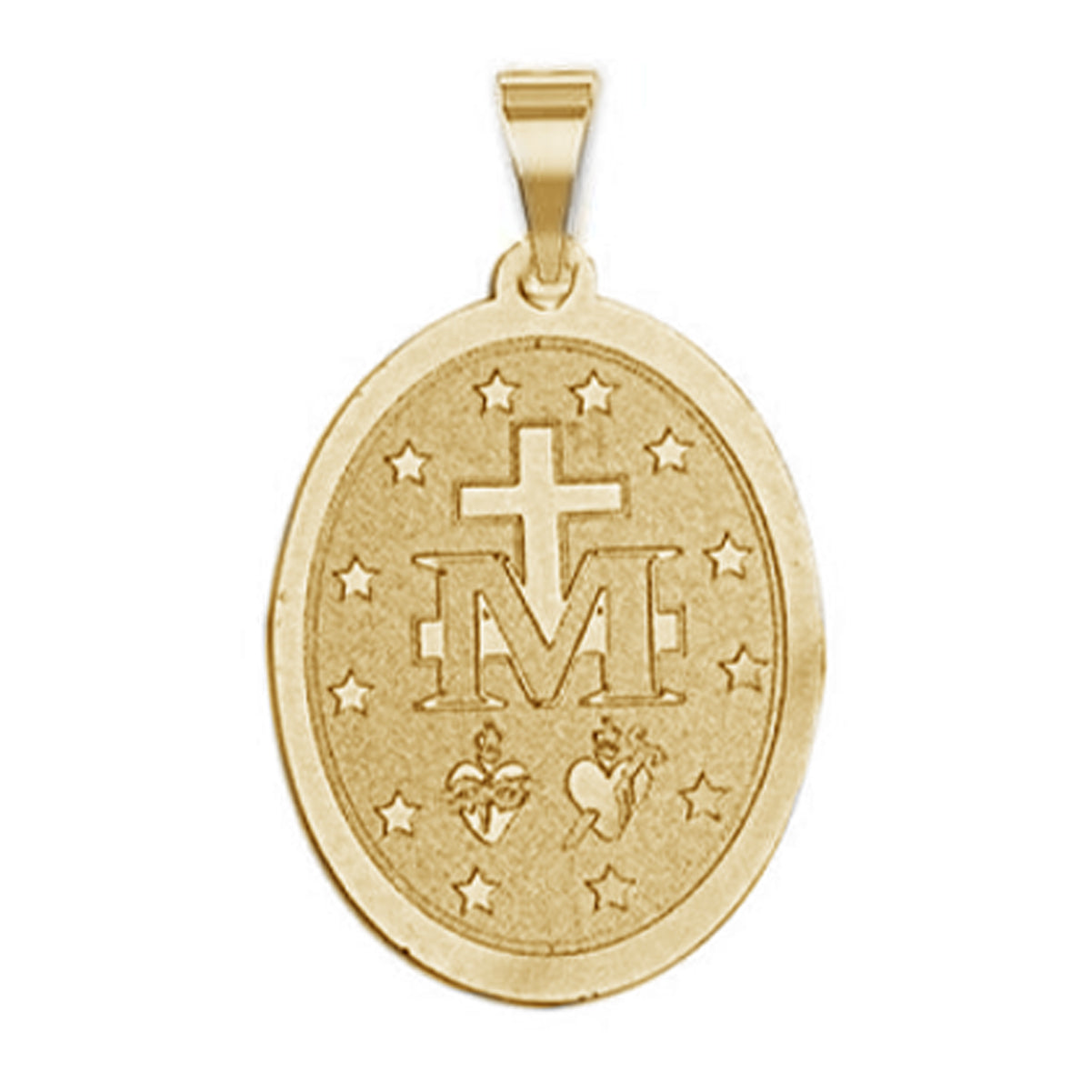 - This Solid 14K Gold medal was created after a nun (now Saint) was given a vision of this exact medal front and back. The back features an "M" surmounted by an cross with two hearts and twelve stars. This is the most popular selling medal of all.