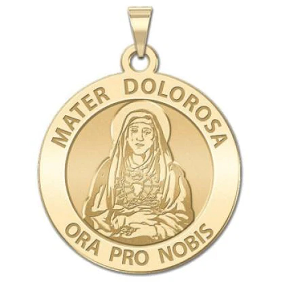 All Religious Medals are Customizable. We can change the spelling, your language, names etc, ex: change "Pray for Us" to "Pray For Me". Just let us know in "special instructions"Stabat mater dolorosa ("The sorrowful mother stood"). The hymn, one of the most powerful and immediate of extant medieval poems, meditates on the suffering of Mary, Jesus Christ's mother, during his crucifixion. It is sung at the liturgy on the memorial of Our Lady of Sorrows.