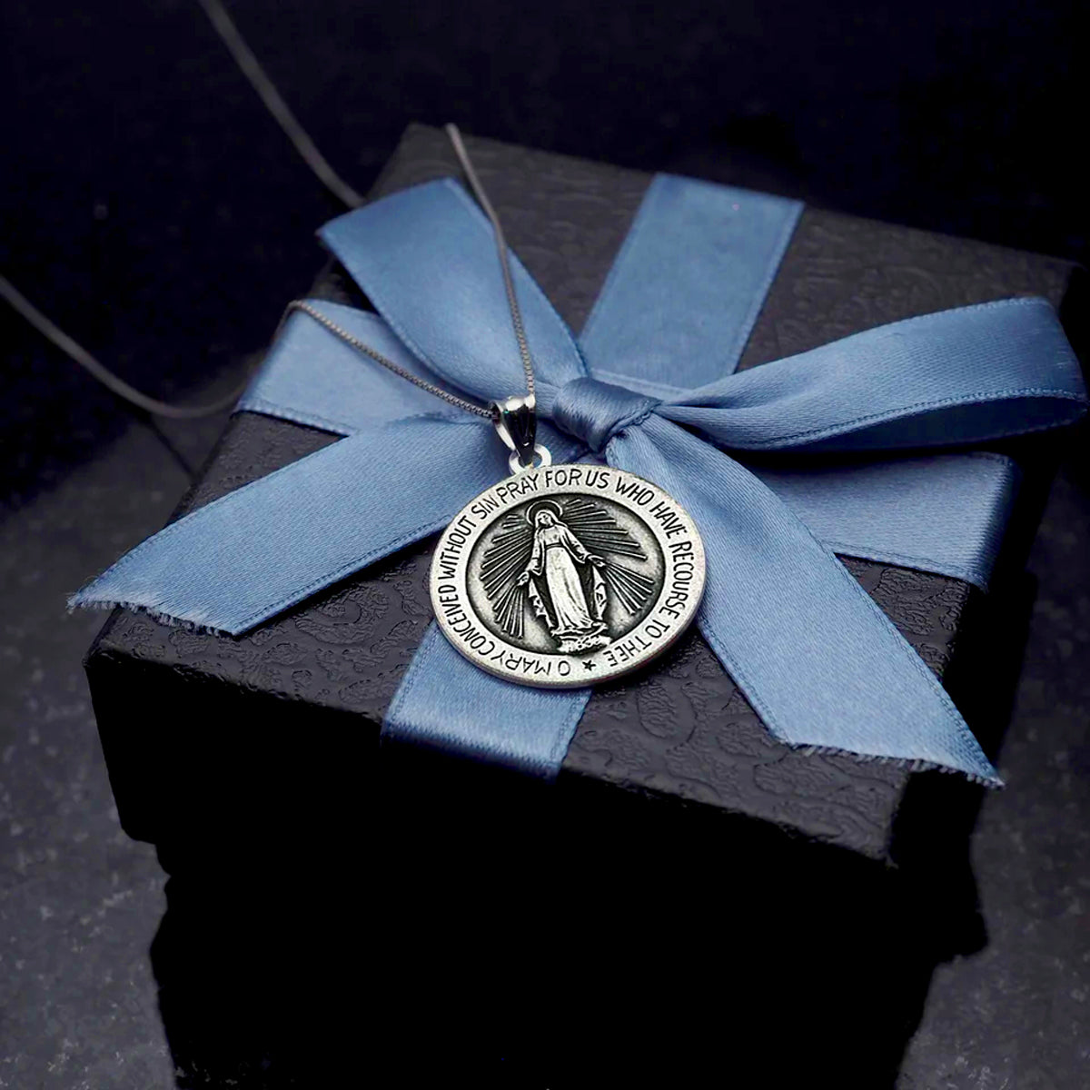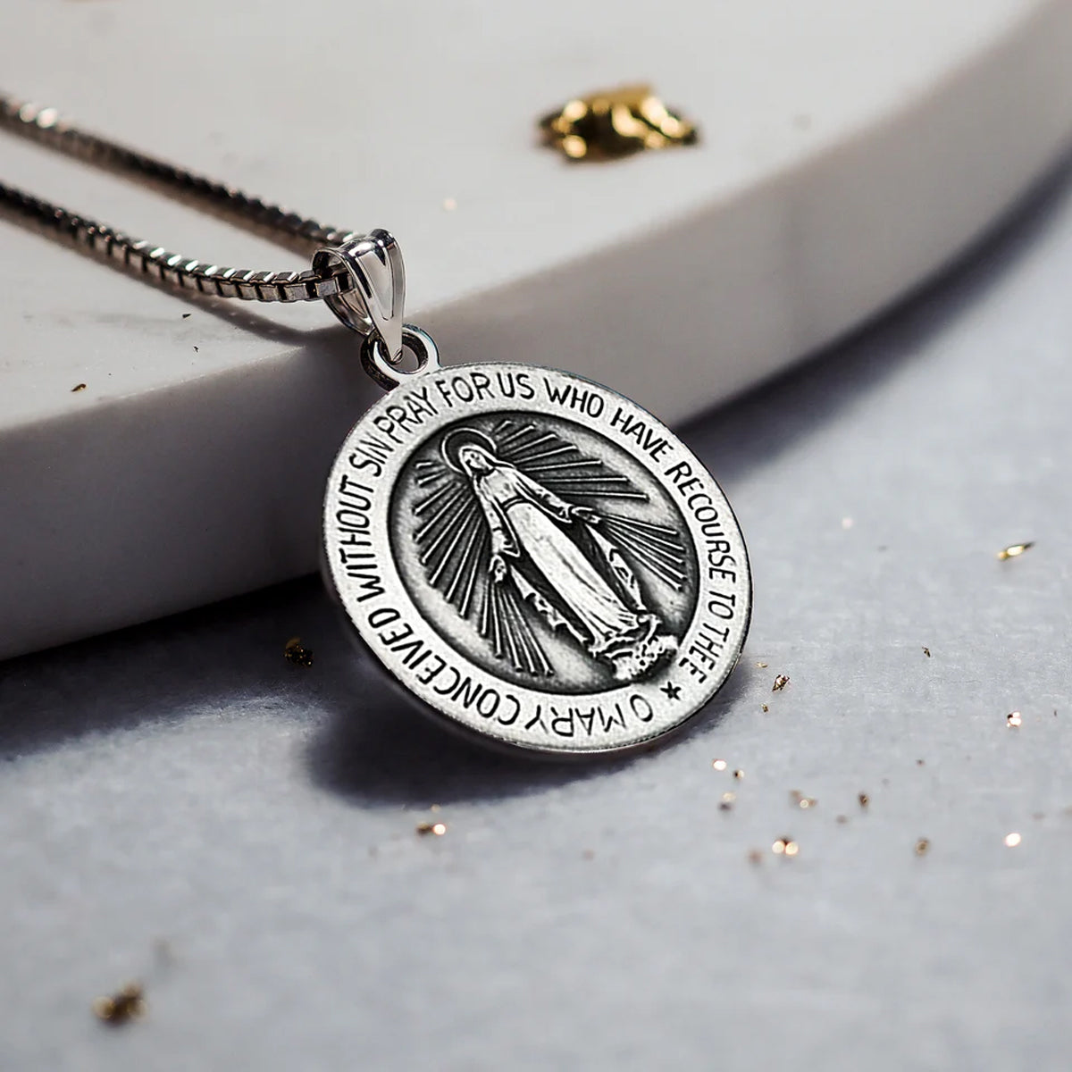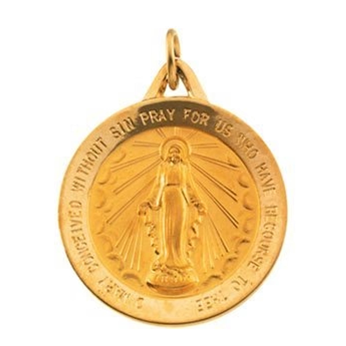 - This Solid 14K Gold medal was created after a nun (now Saint) was given a vision of this exact medal front and back. The back features an "M" surmounted by an cross with two hearts and twelve stars. This is the most popular selling medal of all.