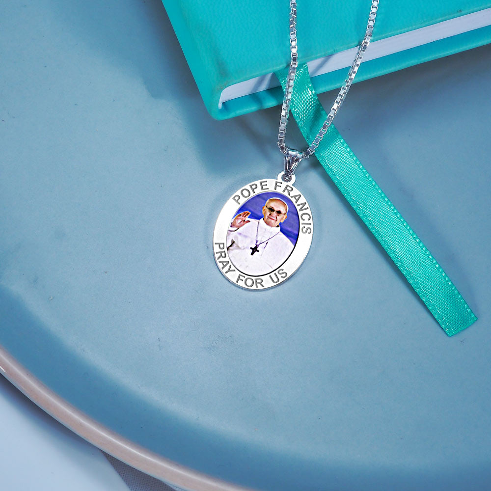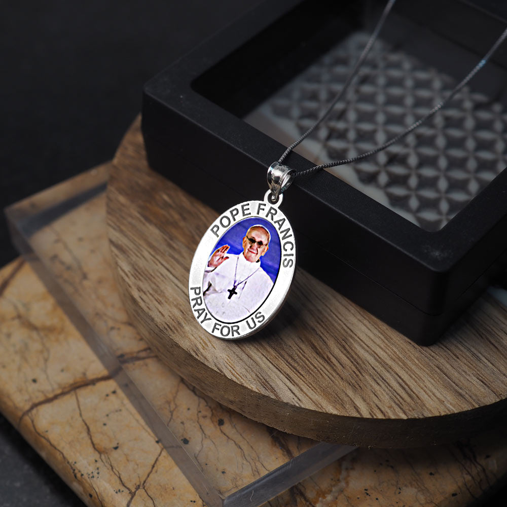All Religious Medals are Customizable. We can change the spelling, your language, names etc, ex: change "Pray for Us" to "Pray For Me". Just let us know in "special instructions"Pope Francis I is the 266th pope of the Catholic Church, elected by the Papal conclave on 13 March 2013. A native of Buenos Aires, Argentina, he was ordained as a priest in 1969. In 1998 he became the Archbishop of Buenos Aires, and in 2001 a cardinal. He was elected pope following the resignation of his predecessor Pope Benedict XVI on 28 February 2013. Bergoglio chose the name Francis (the first time a pope has taken that name) in honour of Saint Francis of Assisi. He is both the first Jesuit pope and the first pope from the Americas. He is also the first pope from outside Europe since Gregory III in the 8th century.