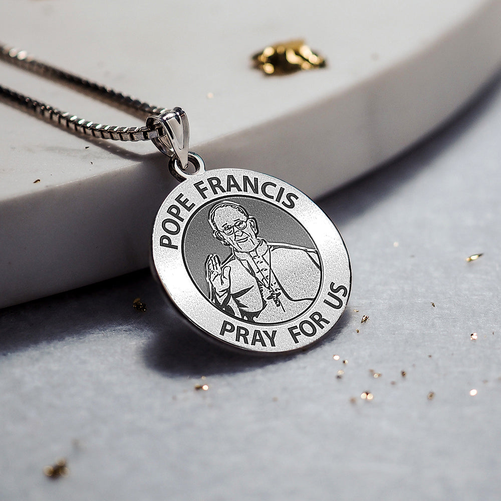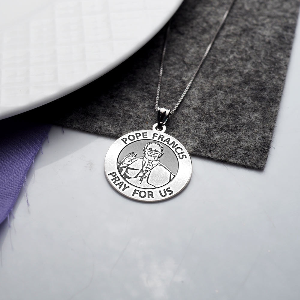 All Religious Medals are Customizable. We can change the spelling, your language, names etc, ex: change "Pray for Us" to "Pray For Me". Just let us know in "special instructions"Pope Francis I is the 266th pope of the Catholic Church, elected by the Papal conclave on 13 March 2013. A native of Buenos Aires, Argentina, he was ordained as a priest in 1969. In 1998 he became the Archbishop of Buenos Aires, and in 2001 a cardinal. He was elected pope following the resignation of his predecessor Pope Benedict XVI on 28 February 2013. Bergoglio chose the name Francis (the first time a pope has taken that name) in honour of Saint Francis of Assisi. He is both the first Jesuit pope and the first pope from the Americas. He is also the first pope from outside Europe since Gregory III in the 8th century.
