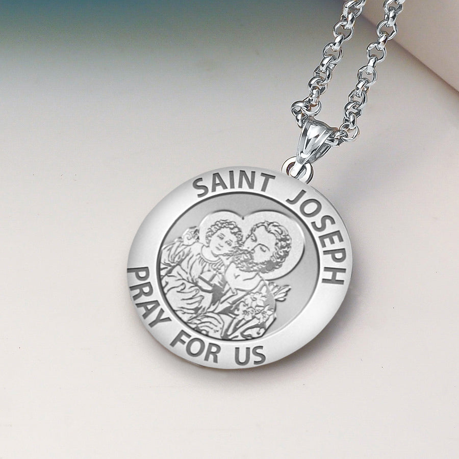 All Religious Medals are Customizable. We can change the spelling, your language, names etc, ex: change "Pray for Us" to "Pray For Me". Just let us know in "special instructions"Saint Joseph is known from the New Testament as the husband of Mary and although according to most Christian traditions he was not the biological father of Jesus of Nazareth, he acted as his foster-father and as head of the Holy Family. Joseph is venerated as a saint within the Roman Catholic, Eastern Orthodox, and Anglican churches. In the Roman Catholic and other traditions, Joseph is the patron saint of workers and has several feast days. He was also declared to be the patron saint and protector of the universal Catholic Church (along with Saint Peter) by Pope Pius IX in 1870, and is the patron of several countries and regions. He is a rare example of a saint from the early days of the church whose devotional role has tended to increase in the centuries since the Middle Ages.