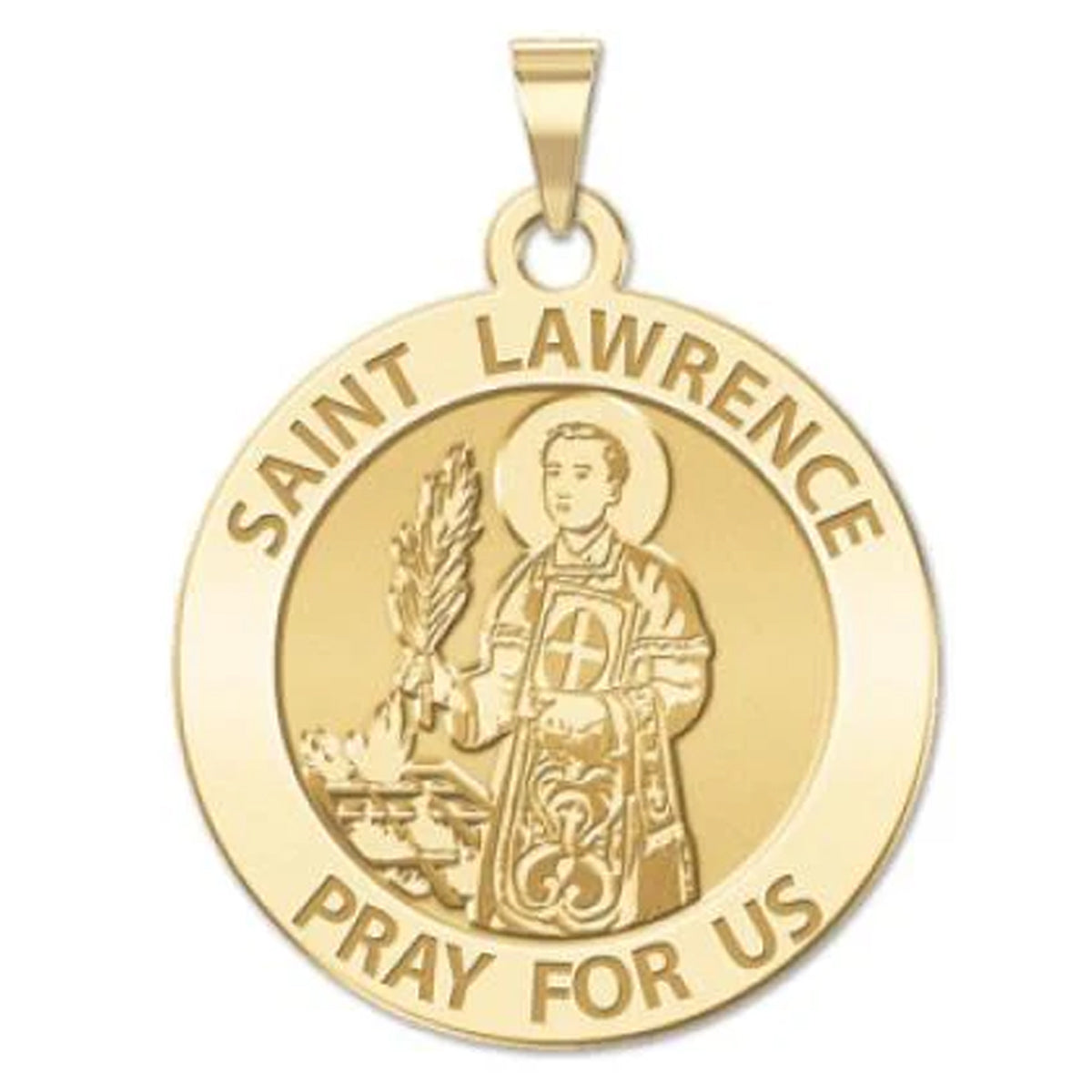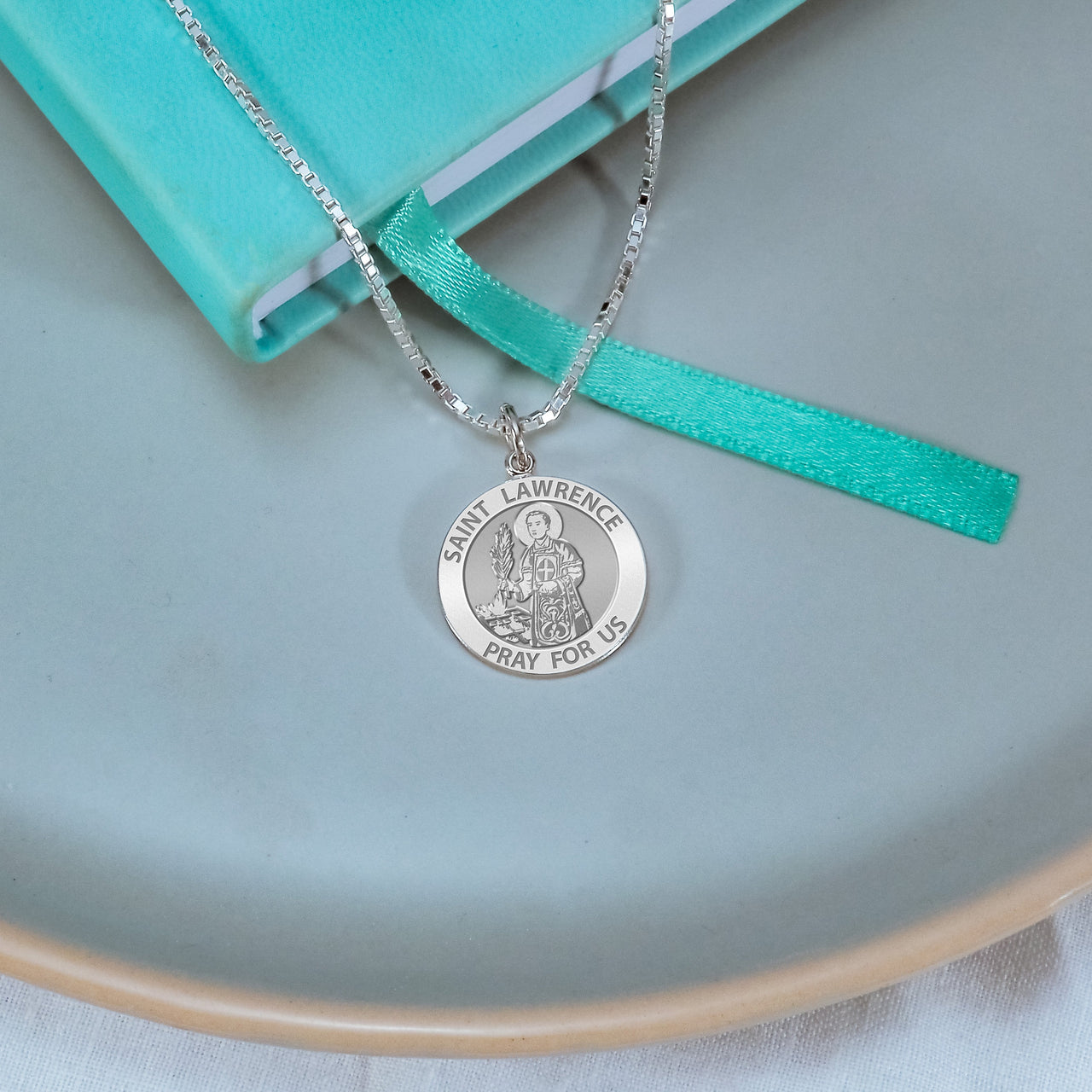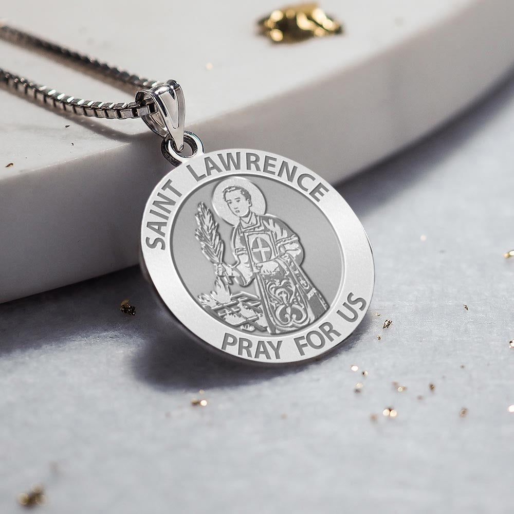 All Religious Medals are Customizable. We can change the spelling, your language, names etc, ex: change "Pray for Us" to "Pray For Me". Just let us know in "special instructions"Saint Lawrence (c. 225 258) (Latin: Laurentius, meaning "laurelled") was one of the seven deacons of ancient Rome who were martyred during the persecution of Roman Emperor Valerian in the year 258. According to lore, among the treasure of the Roman church entrusted to Lawrence for safe-keeping was the Holy Chalice, the cup from which Jesus and the Apostles drank at the Last Supper. Lawrence was able to spirit this away to Huesca with a letter and a supposed inventory, where it lay hidden and unregarded for centuries. When Augustine connects Lawrence with a chalice, it is the chalice of the Mass: "For in that Church, you see, as you have regularly been told, he performed the office of deacon; it was there that he administered the sacred chalice of Christs blood"." According to Christian mythology, the Holy Grail is a relic that was sent by St. Lawrence to his parents in Spain. He entrusted this sacred chalice to a friend whom he knew would travel back to Spain, his home country. While the Holy Chalice's exact journey through the centuries is disputed, it is generally accepted by Catholics that the Chalice was sent by his family to a monastery for preservation and veneration. Historical records indicate that this chalice has been venerated and preserved by a number of monks and monasteries through the ages. Today the Holy Grail is venerated in a special chapel in the Catholic Cathedral of Valencia, Spain, in the region of St Lawrence's birth and early life. By tradition, Lawrence was sentenced at San Lorenzo in Miranda, martyred at San Lorenzo in Panisperna, and buried in the Via Tiburtina in the Catacomb of Cyriaca by Hippolytus and Justinus, a pr