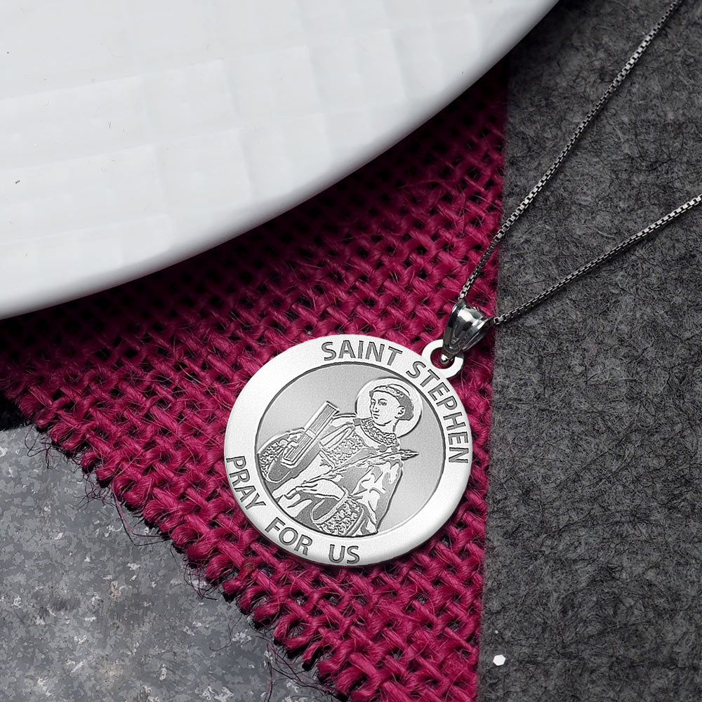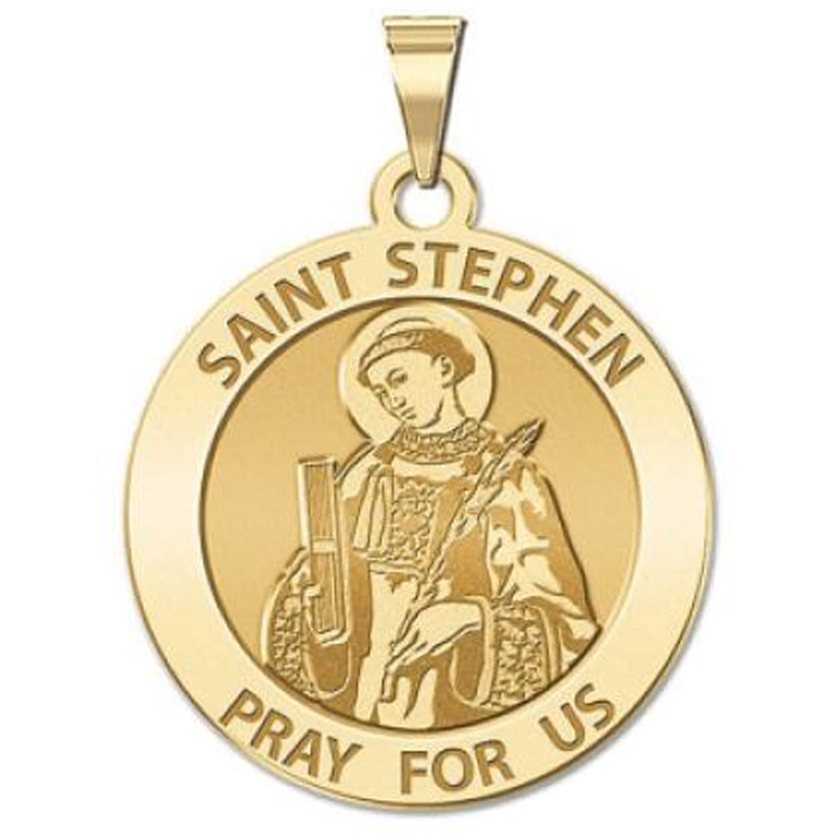 All Religious Medals are Customizable. We can change the spelling, your language, names etc, ex: change "Pray for Us" to "Pray For Me". Just let us know in "special instructions"Saint Stephen (Greek: , Stephanos), known as the Protomartyr (Greek: , Protomartys) (or first martyr) of Christianity, is venerated as a saint in the Roman Catholic Church and the Eastern Orthodox Church. His name means "wreath" or "crown" in Greek. According to the Acts of the Apostles, during the early time frame of the Christian church in Jerusalem, Stephen was one of seven men, probably Hellenistic Jews, chosen to attend to the distribution of aid to elderly widows within the church community. (This role came to be known as deacon.) Stephen was also recognized for his gifts as an evangelist, preaching the teachings of Jesus to the people of Jerusalem, including members of the place of the Hellenistic synagogues. Acts tells the story of how Stephen was tried by the Sanhedrin for blasphemy against Moses and God (Acts 6:11) and speaking against the Temple and the Law (Acts 6:13-14) (see also Antinomianism) and was then stoned to death (c. A.D. 3435) by an infuriated mob encouraged by Saul of Tarsus, the future Saint Paul: "And Saul entirely approved of putting him to death" (8:1). [2]. Stephen's final speech is presented as making an accusation against the Jews of continuing to persecute prophets who spoke out against their sins: '"Which one of the Prophets did your fathers not persecute, and they killed the ones who prophesied the coming of the Just One, of whom now, too, you have become betrayers and murderers." (7:52) Saint Stephen's name is simply derived from the Greek Stephanos, meaning "crown", which translated into Aramaic as Kelil. Saint Stephen is traditionally invested with a crown of martyrdom for Christianity and is often depict