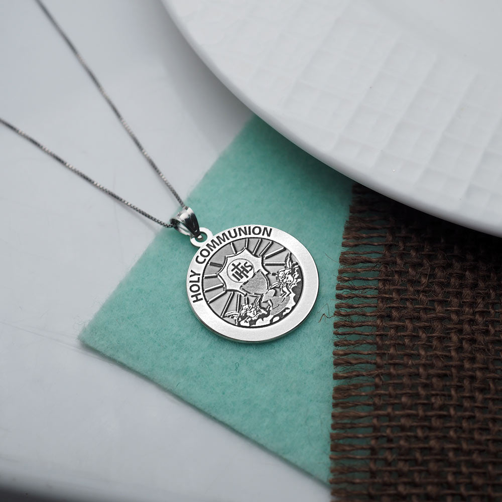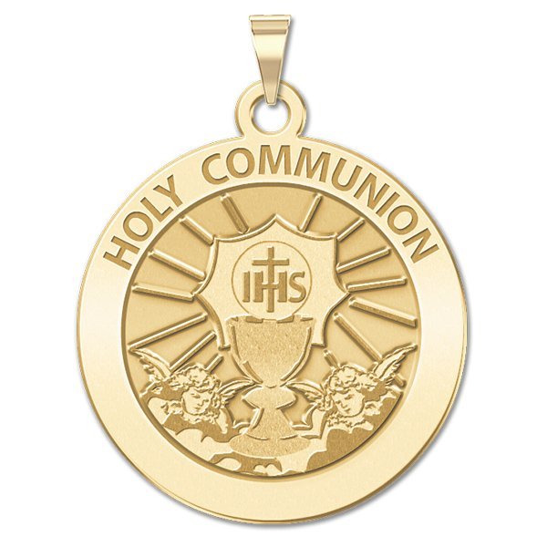 - This 14K Solid Gold First Holy Communion Medal is the celebration of receiving Jesus for the first time.