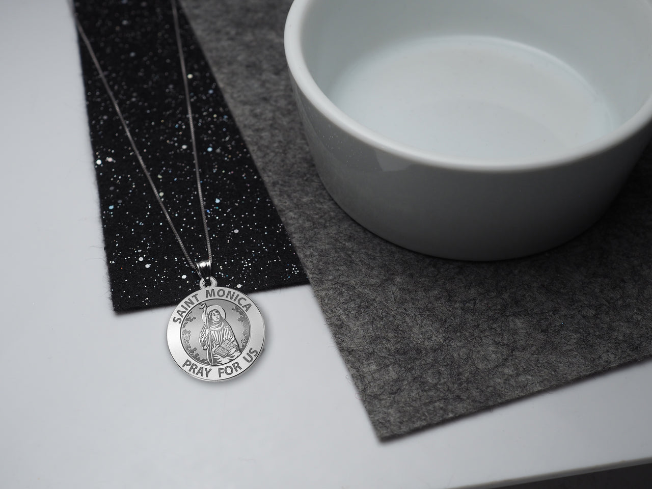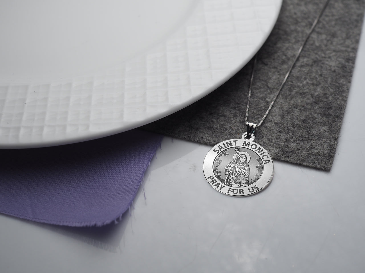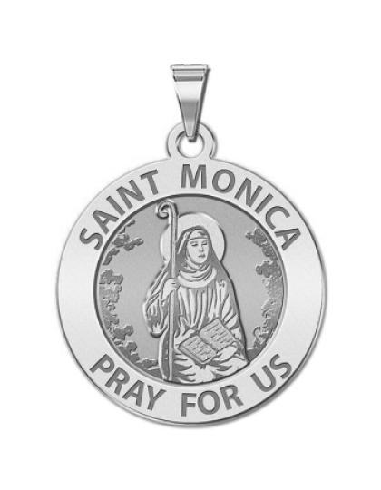 All Religious Medals are Customizable. We can change the spelling, your language, names etc, ex: change "Pray for Us" to "Pray For Me". Just let us know in "special instructions"Monica (or Monnica) (331 387) is a Christian saint and the mother of Augustine of Hippo, who wrote extensively of her virtues and his life with her in his Confessions. Monica was of Berber descent. She was born in Roman Africa. Her parents brought her up as Christian and married her to an older pagan man named Patricius, a curialis of Thagaste (located in modern-day Souk Ahras, Algeria). He was a man of kindness, but also a man given to violent tempers and adultery. Augustine reports that despite the prevalence of domestic violence at the time, because of her obedience to him, Monica was never beaten by Patricius. Initially, she got on poorly with her mother-in-law, but Monica won her over by her respectfulness, patience, and gentleness. Monica attended Holy Mass daily and cultivated the virtue of patience. She advised other wives, who were beaten, to hold their tongues around their husbands, rather than proudly withstand them. Eventually, she converted Patricius to Christianity and calmed his violent nature. Monica bore three children, among them Augustine. Augustine made her very happy with his successes as a scholar and teacher, but he also made her very ashamed with his debauchery. For ten years, Augustine lived with his mistress and subscribed to Manichaeism. Monica sent Augustine to a bishop to be convinced of his errors. The bishop, however, was unable to prevail, and he advised St. Monica simply to continue to pray for her son. He told her, "it cannot be that the son of these tears should perish." When her spouse Patricius died, Monica joined Augustine in Italy. There, some time later, she had the pleasure of seeing her son, at the age of 33