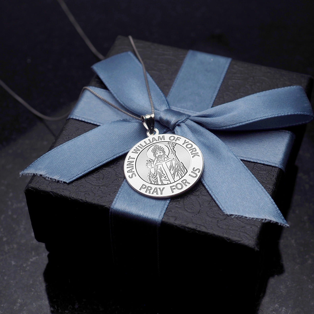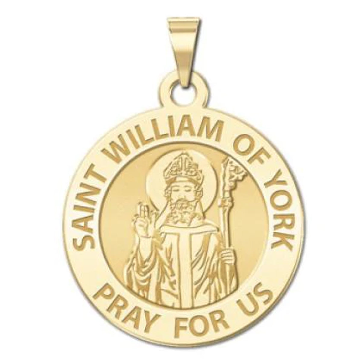 All Religious Medals are Customizable. We can change the spelling, your language, names etc, ex: change "Pray for Us" to "Pray For Me". Just let us know in "special instructions"William of York also known as William FitzHerbert, William I FitzHerbert and William of Thwayt, was an English priest and Archbishop of York. William FitzHerbert has the unusual distinction of having been Archbishop of York twice, both before and after his rival Henry Murdac. He was a relative of King Stephen of England, and the king helped secure FitzHerbert's election to York after a number of candidates had failed to secure papal confirmation. FitzHerbert faced opposition from the Cistercians who, after the election of the Cistercian Pope Eugene III, managed to have the archbishop deposed in favour of the Cistercian Murdac. From 1147 until 1153, FitzHerbert worked to secure his restoration to York, which he finally achieved after the deaths of both Murdac and Eugene III. He did not retain the see long, as he died shortly after returning to York, allegedly having been poisoned. After William's death miracles were reported at his tomb from the year 1177 onwards, and in the year 1227 he was declared a saint.