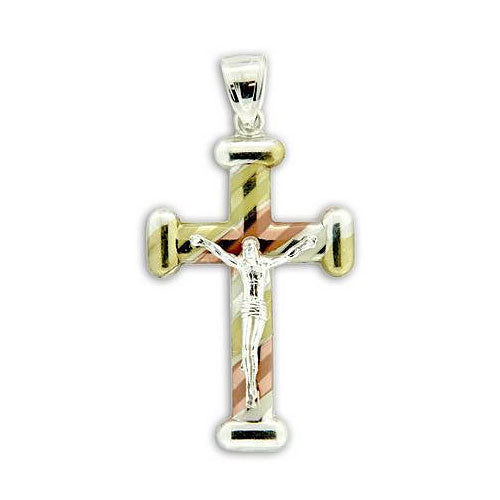 Sterling Silver Tri-color Crucifix Cross Pendant