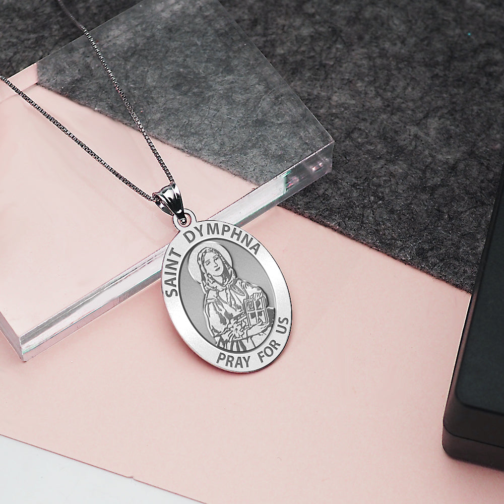 All Religious Medals are Customizable. We can change the spelling, your language, names etc, ex: change "Pray for Us" to "Pray For Me". Just let us know in "special instructions"Saint Dymphna was born in Ireland. Her father was a king there. When her mother died, Dymphna was only fourteen. Her father Damon scoured the world for a suitable and equally beautiful replacement. After the search failed, his advisors pointed out to the chief that his teenage daughter had inherited her mother's looks. Driven mad by grief and mental illness, Damon made awkward sexual advances towards Dymphna. Together with her confessor, the elderly priest St. Gerebernus, the court jester and his wife, she fled to Gheel, Belgium. There they took refuge at a chapel near the present day site of Gheel, not far from Antwerp. However Damon's spies tracked them down and the chief set out after them. Confronting them at Gheel, he ordered his soldiers to slay Gerebernus and begged Dymphna to return with him to Ireland. When she refused, he decapitated her in a rage. Locals later buried the two bodies. A few years later, they decided to make a better burial site and found 2 tombs where they had buried them. St. Dymphna is also known as "Dimpna" or "Dympna" and may be synonymous with the Irish saints Davets and Damhnait (Damhnade). Her feast day is May 15 and she is the patron saint of those who suffer from mental illnesses and nervous system disorders, epileptics, mental health professionals, incest victims, and runaways.