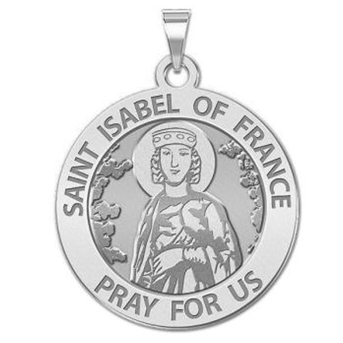 All Religious Medals are Customizable. We can change the spelling, your language, names etc, ex: change "Pray for Us" to "Pray For Me". Just let us know in "special instructions"Saint Isabel of France (March 122523 February 1270) was the daughter of Louis VIII of France and Blanche of Castile. She was a younger sister of Louis IX of France (Saint Louis) and Alphonse of Toulouse, and an older sister of Charles I of Sicily. In 1256 she founded the Franciscan Abbey of Longchamp in the part of the Forest of Rouvray now called the Bois de Boulogne, west of Paris. When still a child at court Isabel was already devoted to religion. By the Bull of 26 May 1254, Pope Innocent IV allowed her to retain some Franciscan fathers as her special confessors. She was even more devoted to the Franciscan Order than her royal brother. She not only broke off her engagement with a count, but moreover refused the hand of Conrad IV of Germany, son of Frederick II, Holy Roman Emperor, although pressed to accept him by everyone, even by Innocent IV, who however did not hesitate subsequently to praise her fixed determination to remain a virgin.